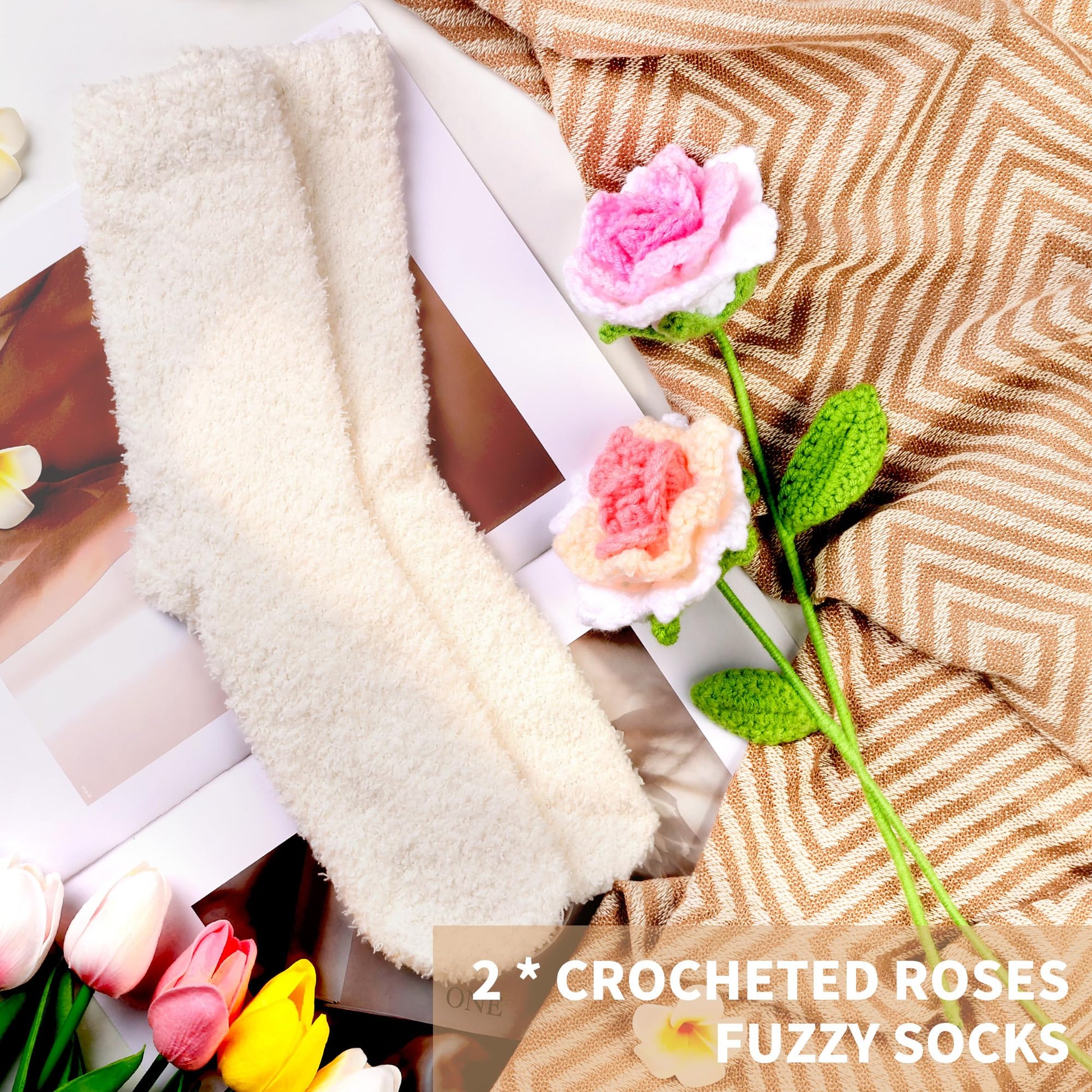- 11PCS Gift Baskets for Women: Our gift basket includes large soft knitted throw blanket, fuzzy socks, scented candle, ceramic cup, metal spoon, rattan coaster, 2 * handmade crocheted roses, metal bookmark, gift card and elegant gift box. Give her a self care gifts and let her enjoy a comfortable and relaxing time!