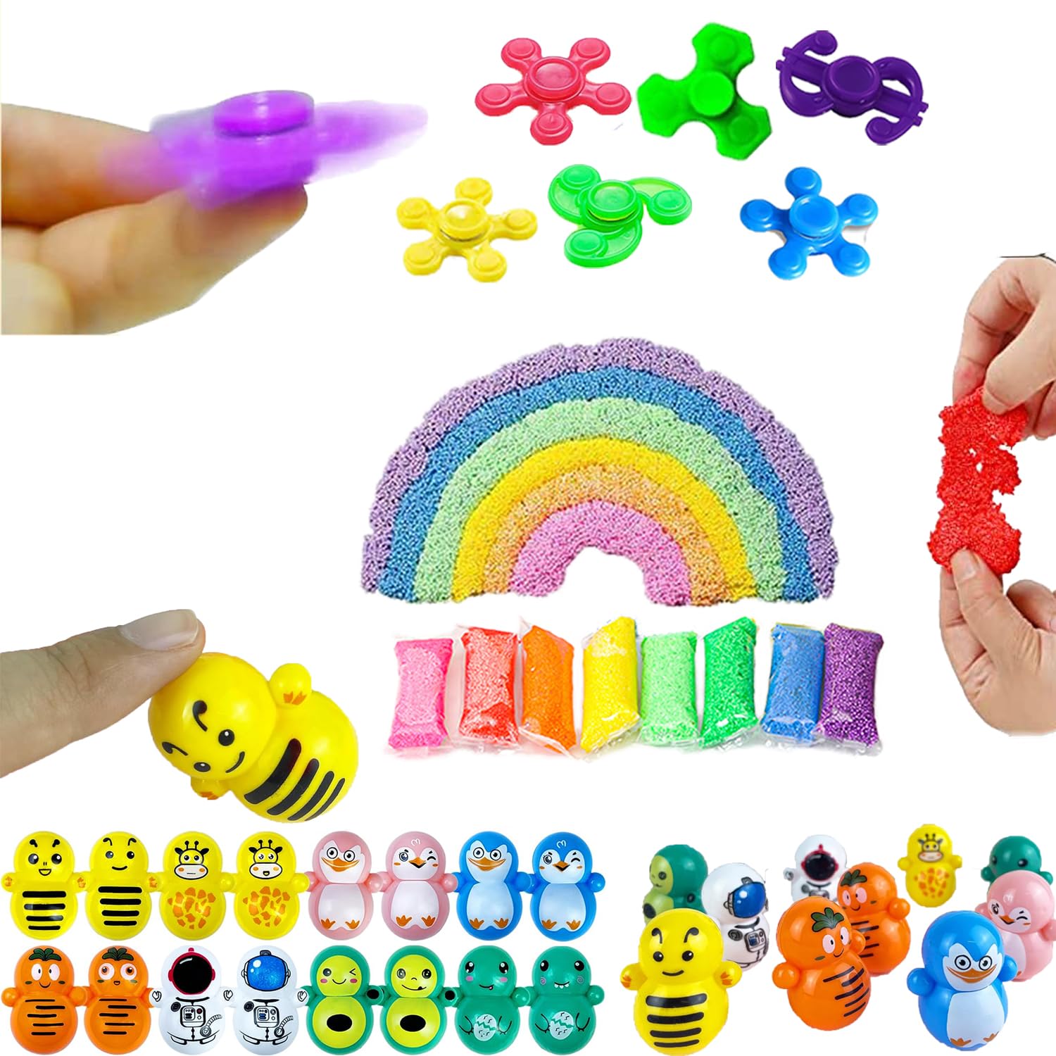 - 【Stress Relief & Anxiety Fidget Toys】This is a colorful toy set, the random color is easier to attract children's attention. Studies show that fidget party favor set help those who suffer with anxiety. By simply playing squeeze, stretch and flip these toys release and relieve stress. These toys help promote a sense of calm, reduce stress, anxiety and can increase focus and attention. Great design for ADHD, ADD, autism, quitting bad habits, etc. It is great gifts for kids.