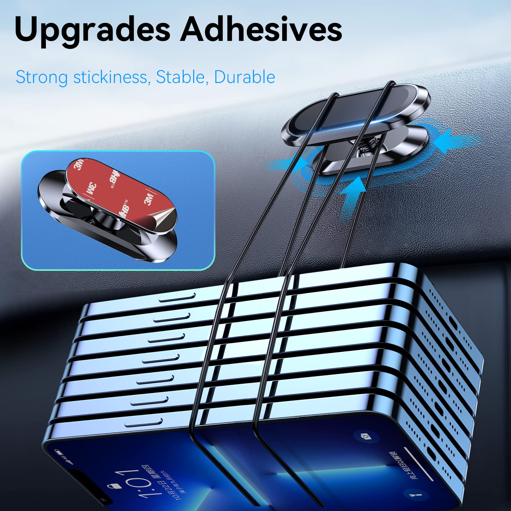 - 【2-PACK Super Magnetic Phone Holder】: This magnetic mobile phone holder has 8 super magnets, which can generate strong magnetic attraction and firmly hold any of your mobile devices. The generation of a closed magnetic field will not affect the telephone signal. You can completely free your hands, allowing you to drive with peace of mind.
