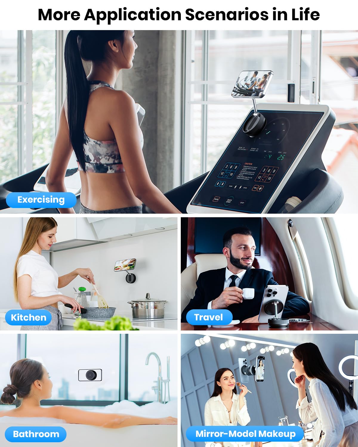 - 【One Stand, Endless Uses】 Use your vacuum suction magnetic phone holder for hands-free help anywhere—GPS while driving, video calls at work, recipes in the kitchen, or workouts at the gym. Stable and reliable, it keeps your phone secure through all your daily activities.