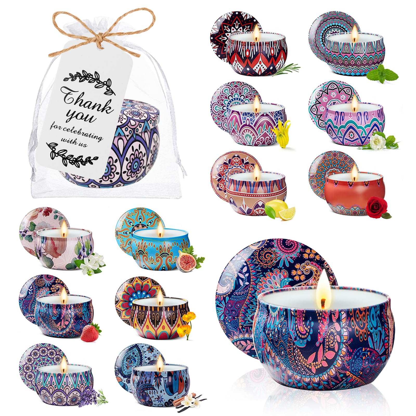 - Candle Sets for Women Gift: Our scented candles gift set includes 24 beautifully packaged candles, 24 charming thank-you tags, 24 classy white gift bags and a 18meter hemp rope. Perfect for adding a touch of elegance to any occasion, this set is ideal for baby showers, weddings, holidays, and special celebrations