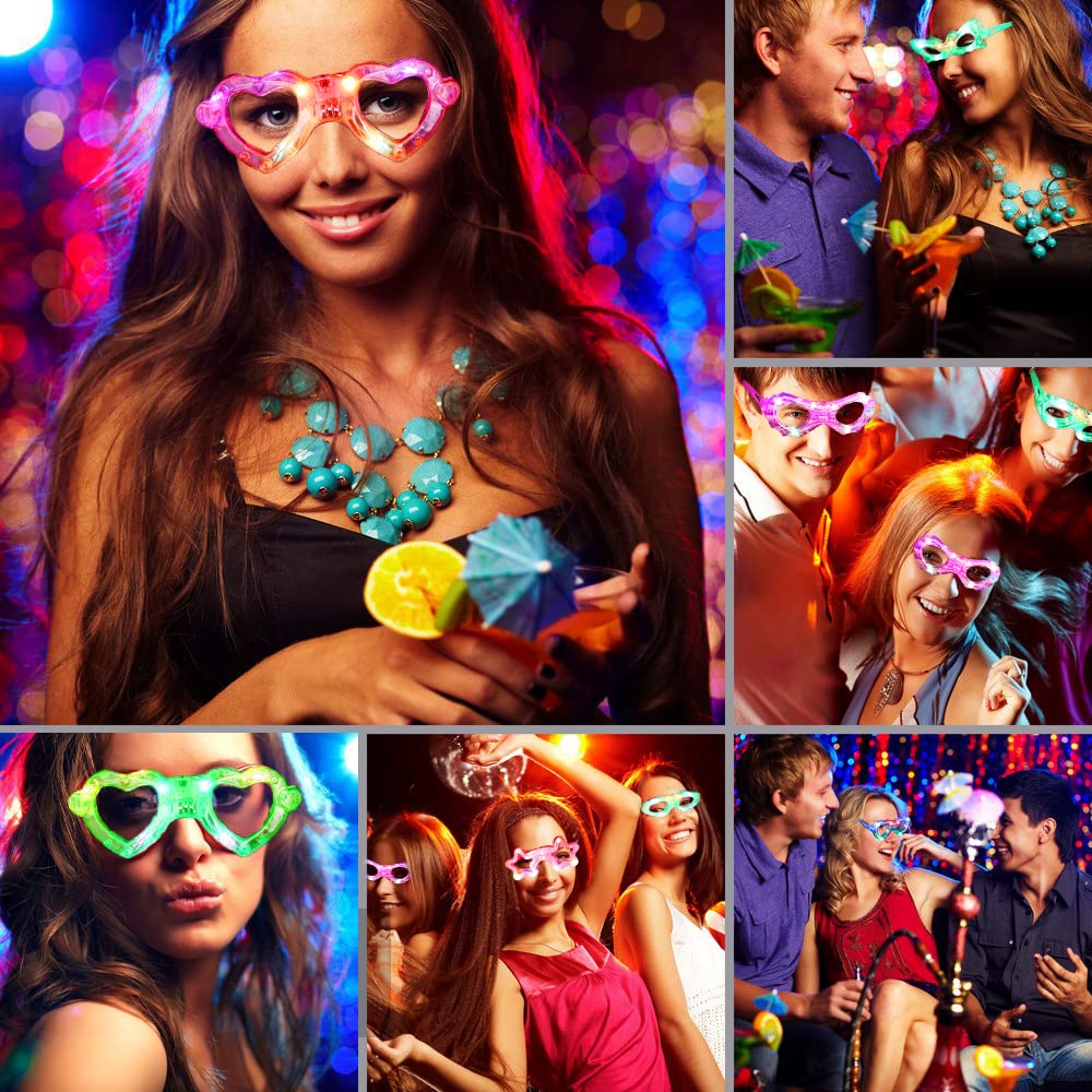 - đăMultiple Uses ăThese neon glow party supplies light up any party in vibrant red, green, blue and purple.These Party flash glasses are best to use during birthday parties, Christmas parties, rave parties, glow party New Yearâs Eve 2025 celebration and other occasions you are going to attend. Also great for goodie bag fillers, party favors, giveaways and game prizes.