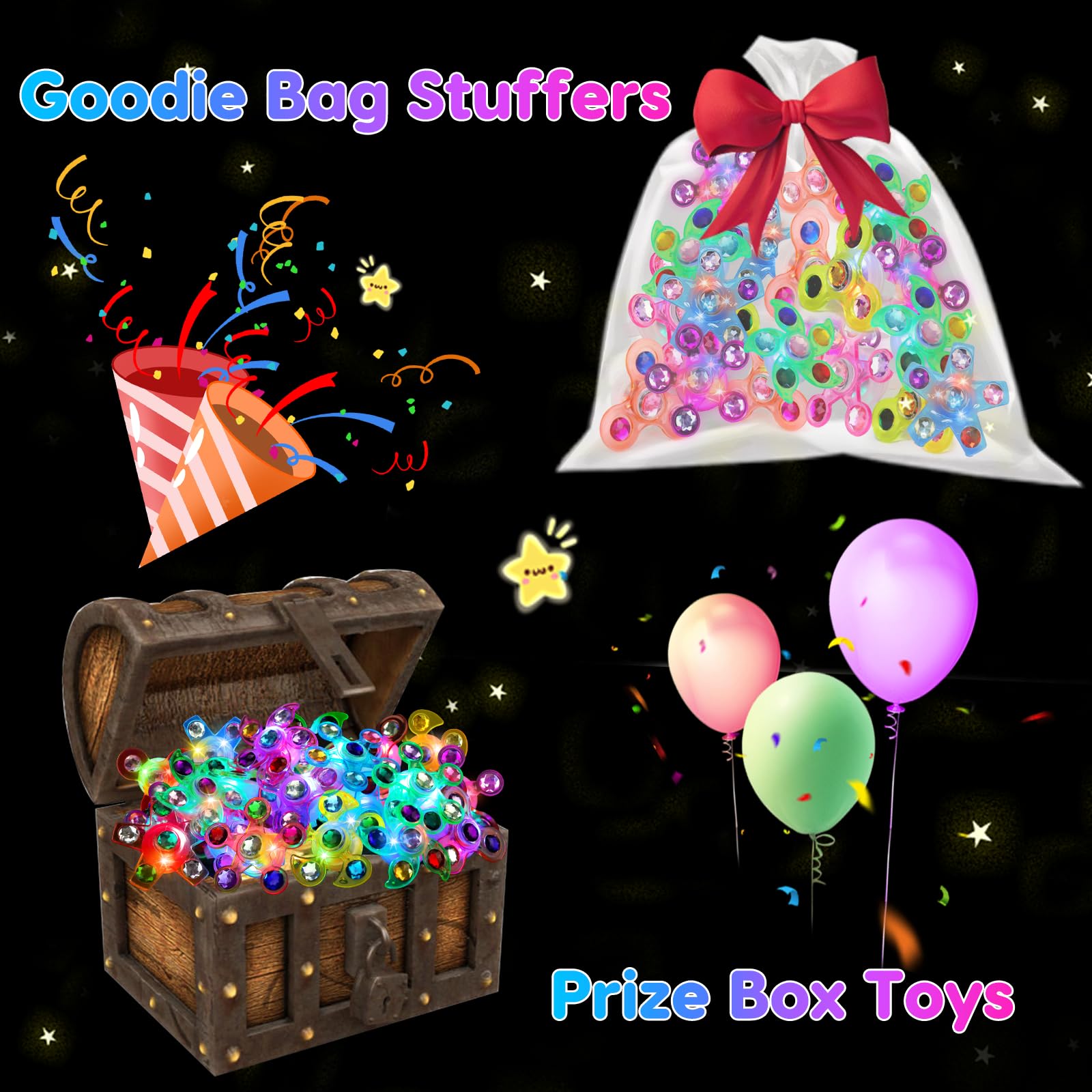 - [Awesome Return Gifts for Birthday Party] Our toys are the perfect combination of ring, LED lights and fidget spinner toy, fun and eye-catching. Great for treasure chest toys, carnival prizes, student gifts from teacher bulk, prize bin toys for classroom, small bulk fidget toys for kids teens 2-4 3-5 8-12, toddler light up rings, summer party favors for kids, bulk summer themed party favors for kids boys and girls, halloween party favors, halloween goody bag stuffers for kids. It will be a unique gift!
