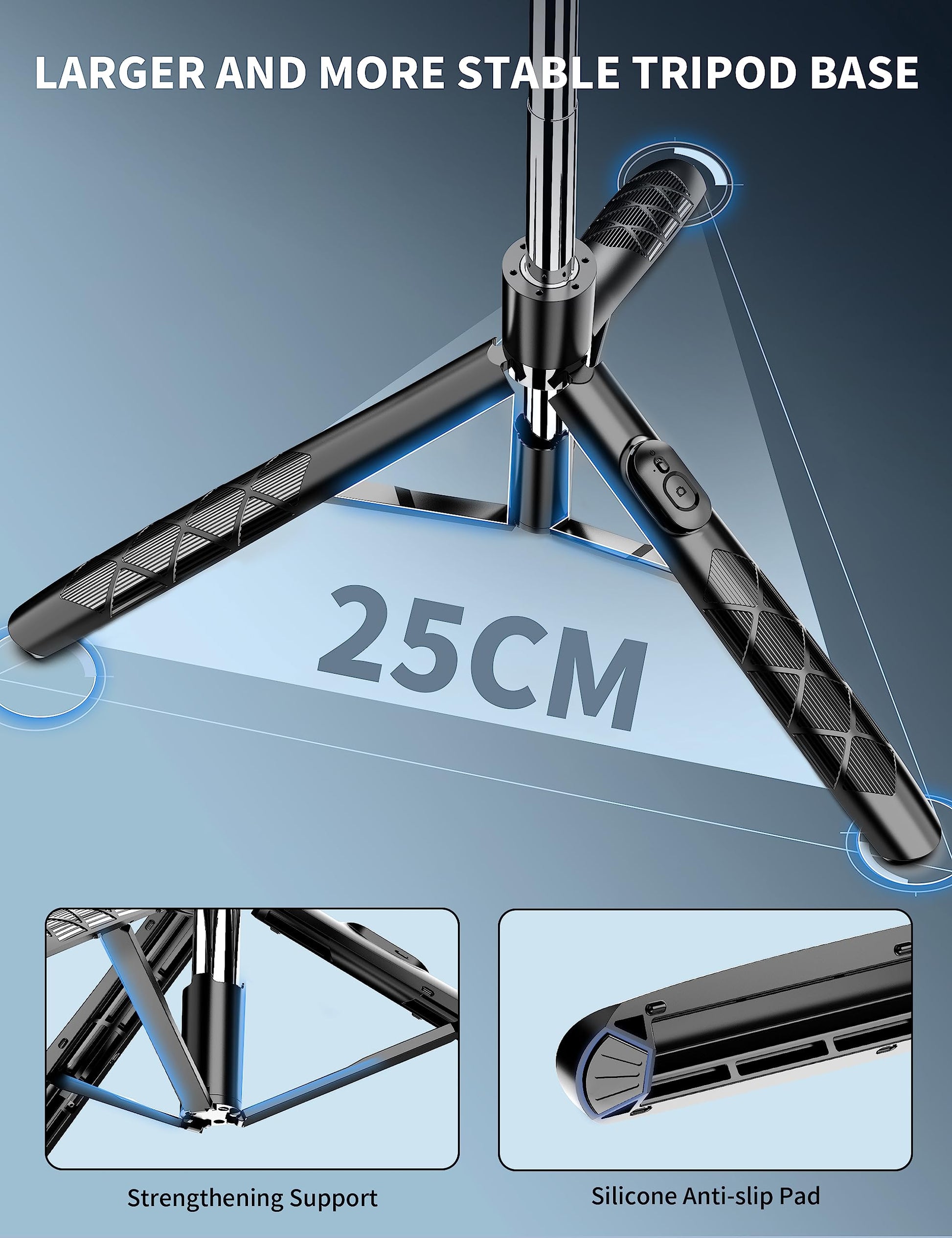 - ✅【Extra Tall 71' Adjustable Tripod】: With 8-section adjustable telescopic poles, the phone selfie stick tripod stand is tall enough, can be adjusted from 13.11in(33.3cm) to 70.86in(180cm). Therefore, this selfie stick for iPhone can capture a wider landscape and meet the needs of people who want to have different shoot heights and apply it in different scenes, even for the tall man. Suitable for selfies, vlog, live streaming, group photos and more.