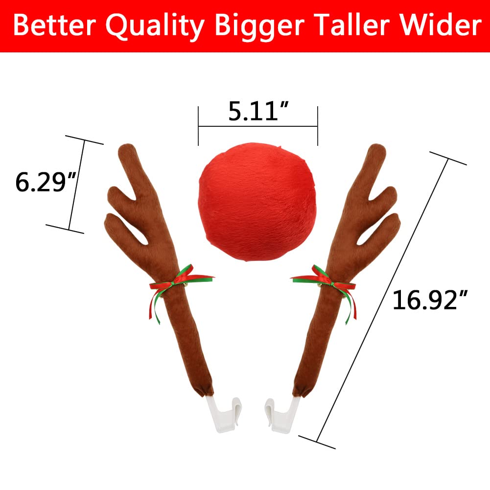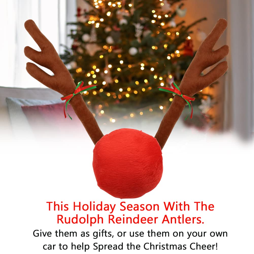 Abnaok Car Reindeer Antler Kit and Nose, Reindeer Christmas Decoration for Car Window Roof-Top & Front Grille,Christmas Reindeer Antlers Auto Decoration Set for Car SUV Van Truck