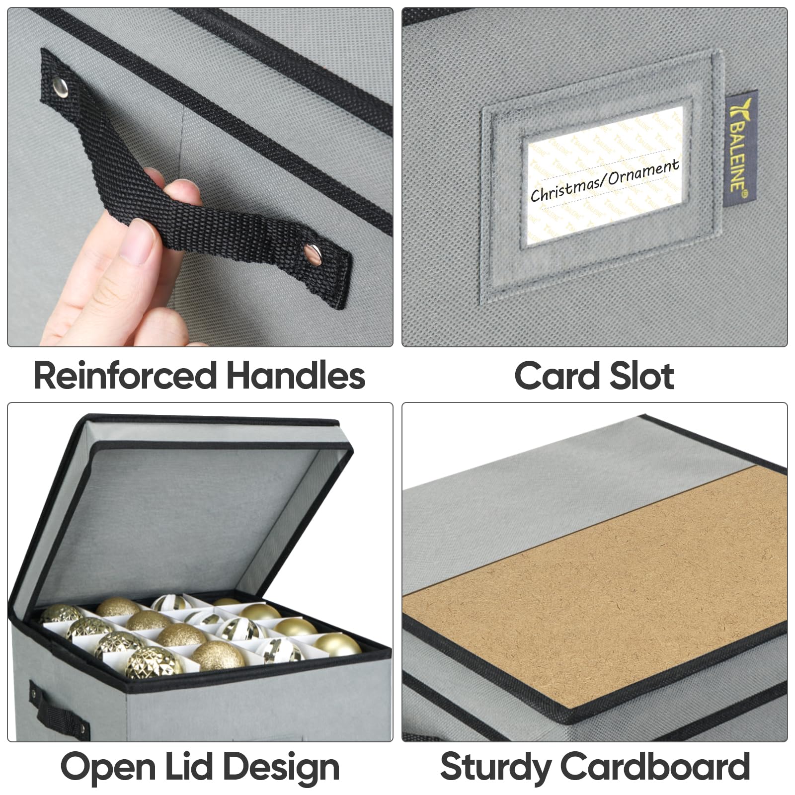 BALEINE Christmas Ornament Storage Box with Dividers, Premium Holiday Ornaments Storage Container Bin for Xmas Decorations (64 Ball, Grey)