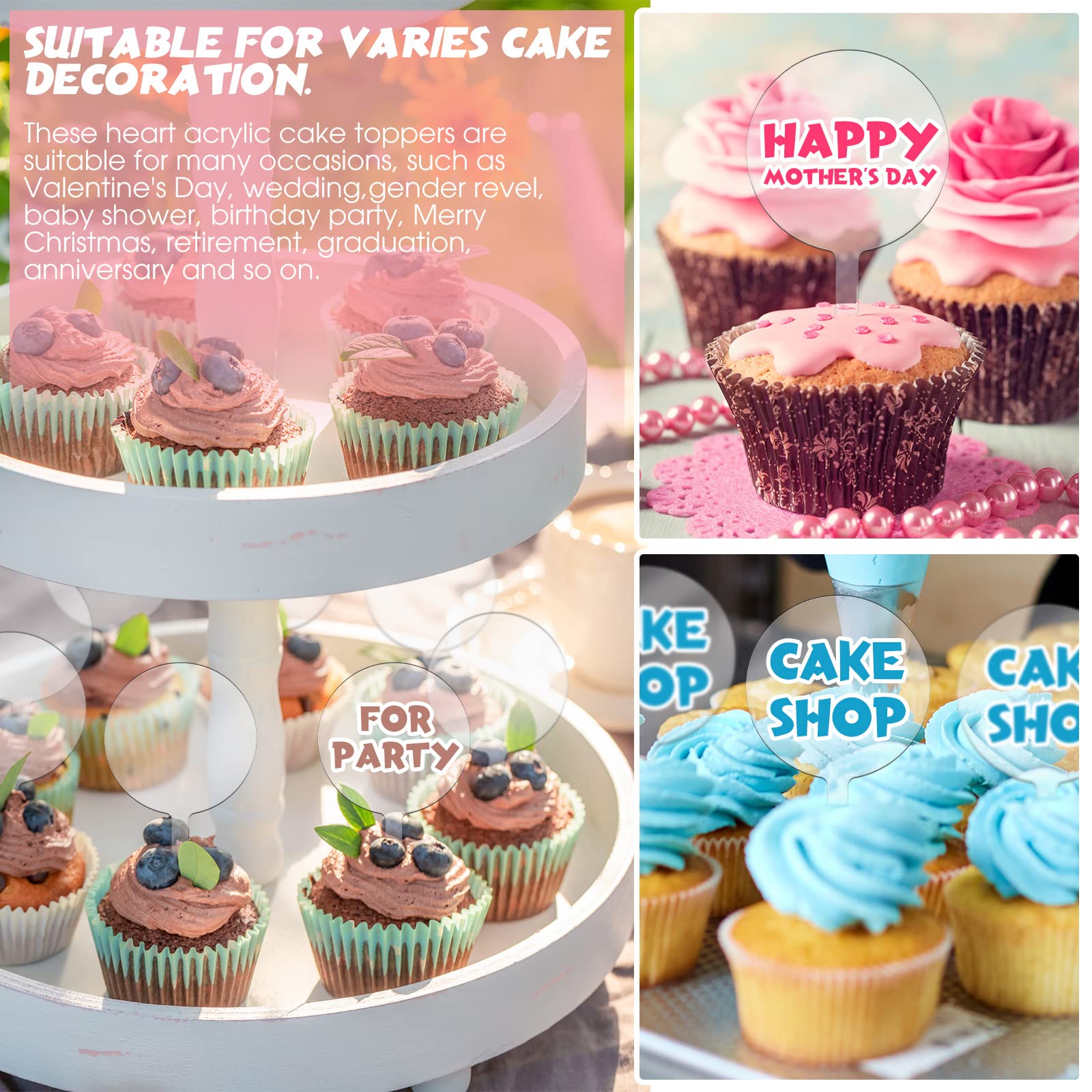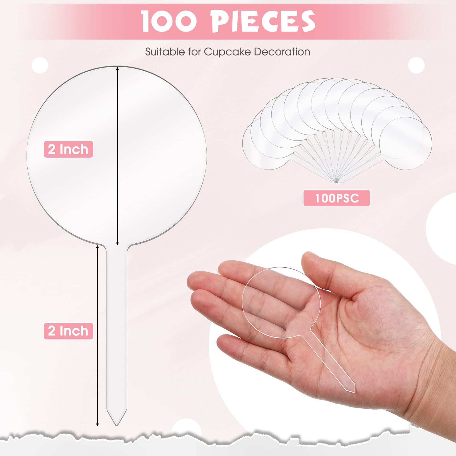 - Bulk Quantity: you will receive 100 pieces round acrylic cupcake toppers with sticks, each measures 2 inches/ 5 cm in diameter, 0.06 inches/ 1.5 mm in thickness; Abundant quantity can meet your assorted parties DIY demands and you can also share them with others