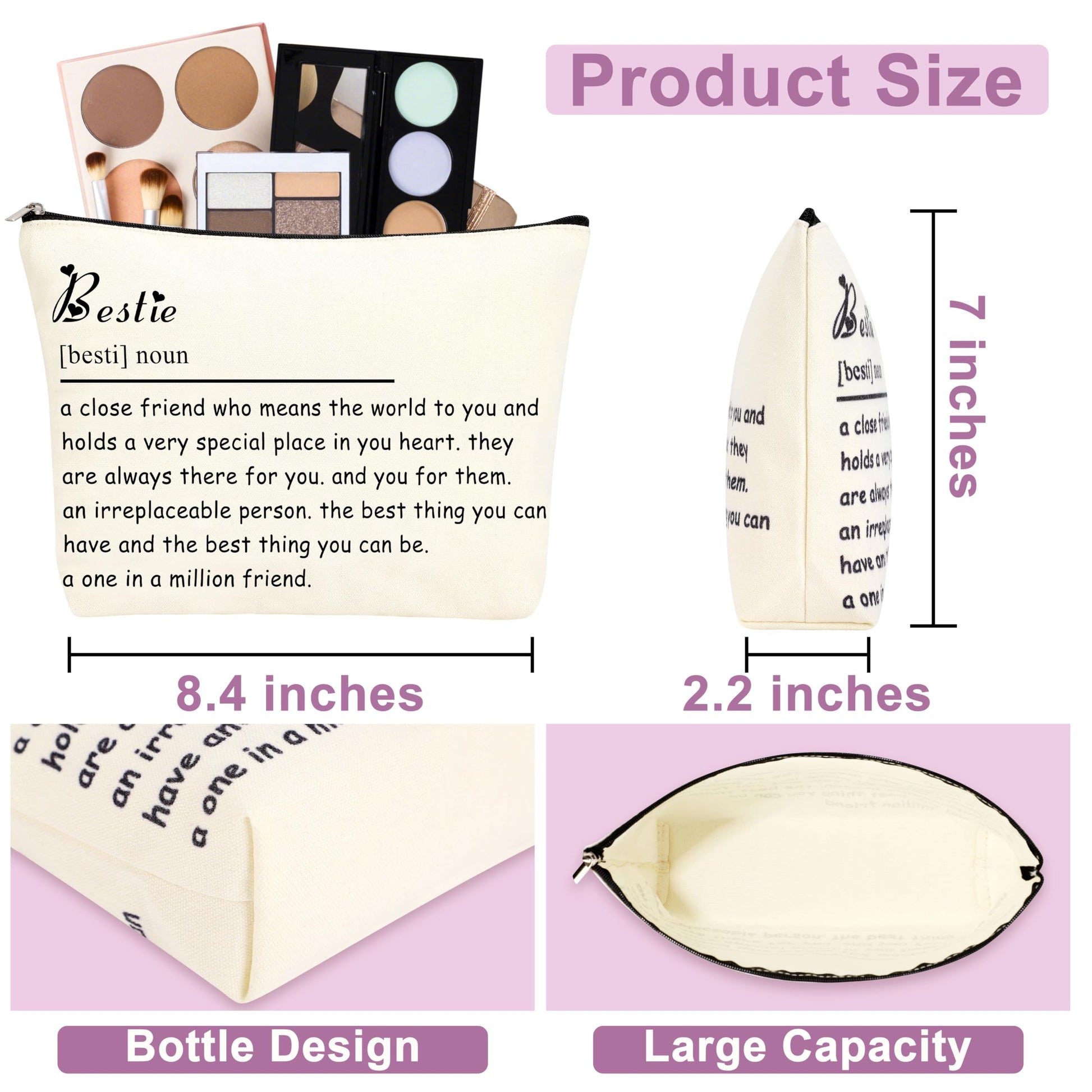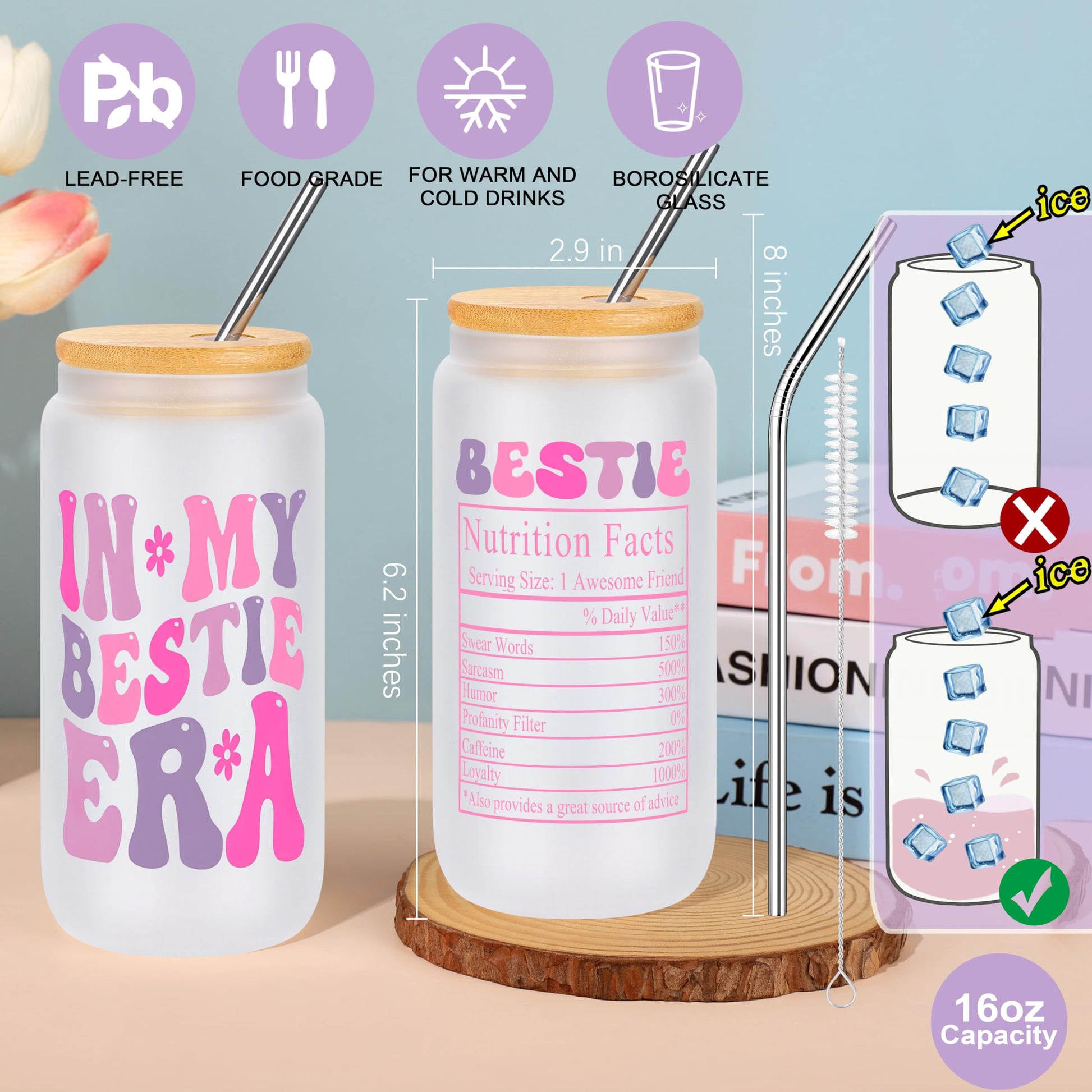 - ✨【Best Friend Bestie Birthday Gifts for Women】The 6 -piece Bestie Gift Set is a thoughtful choice, 1 x 16 Oz can glass with lid and straw, 1 x bestie tote bag, 1 x 'bestie last nerve' sticker lavender glim, 1 x double-sided printied, high quality coating Makeup Bag, 1 x to my best friend 4mm moon stone bracelets and 1 x In Our Bestie message card. Express your love and best wishes to her, let her always believe in herself, and fill her with joy and love.