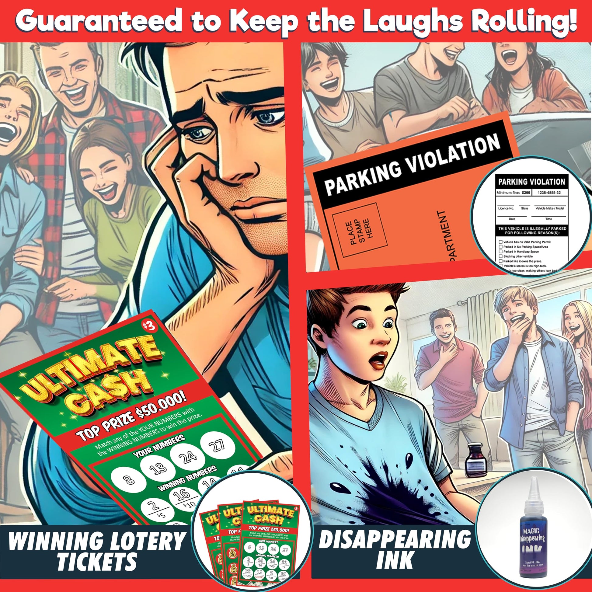 - Designed for Teens & Adults: Perfect for older pranksters with realistic gags like car scratch and parking violation tickets.