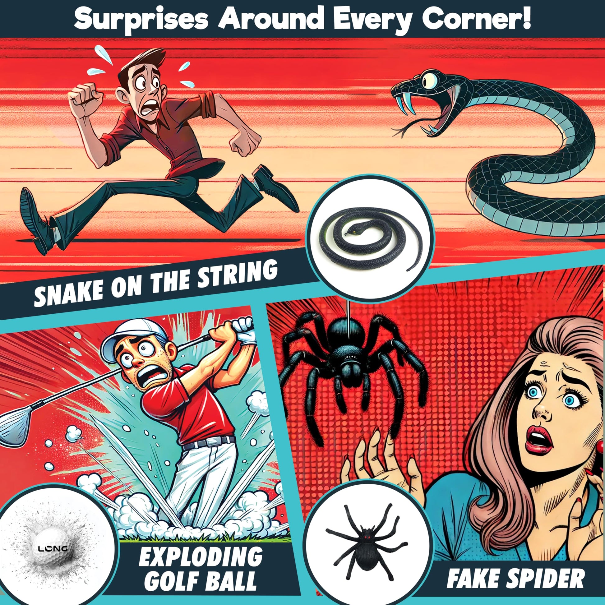 - Ultimate Prank Collection: Includes over 20 hilarious pranks like fart spray, fake poop, and exploding golf ball.