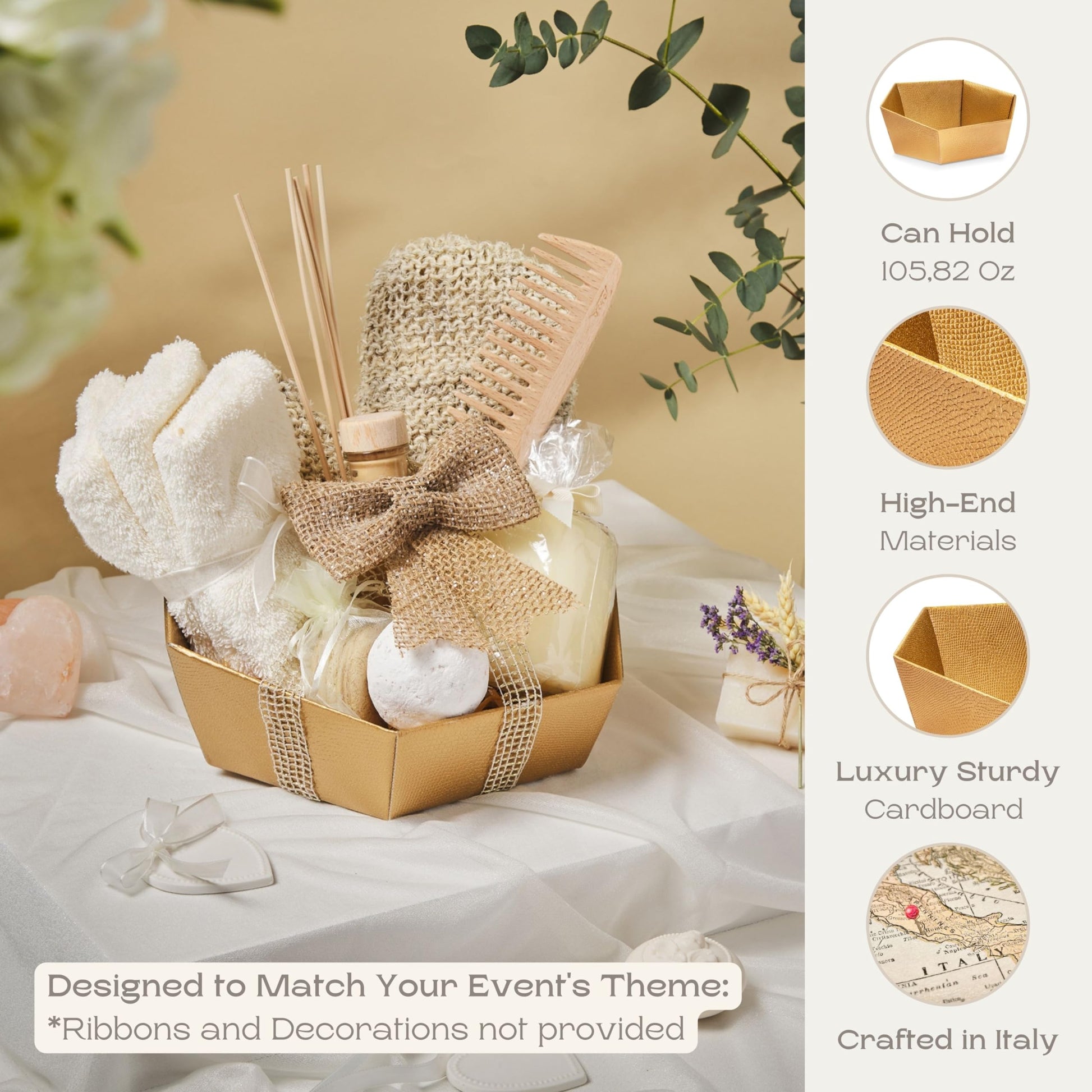 Boxes Craftory Pack of 5 Empty Baskets for Gifts - Containers Ideal for Christmas and Wedding - 8" x 6.69" x 2.75" Gold
