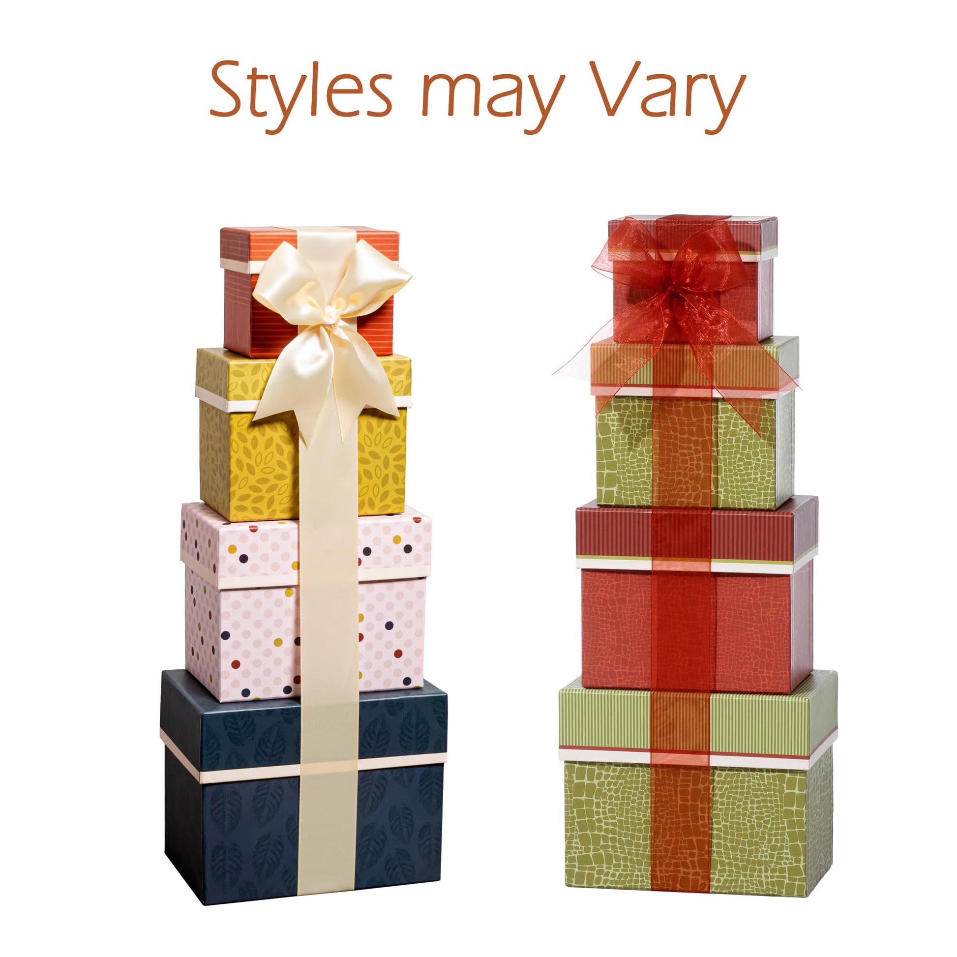 - REUSABLE CONTAINER: This gift tower measures 5' x 7' x 17' and includes 4 coordinating, stacked boxes. Reuse for decoration or storage for photos, mementos, and household items. Each gift includes a gift tag for a personalized touch.