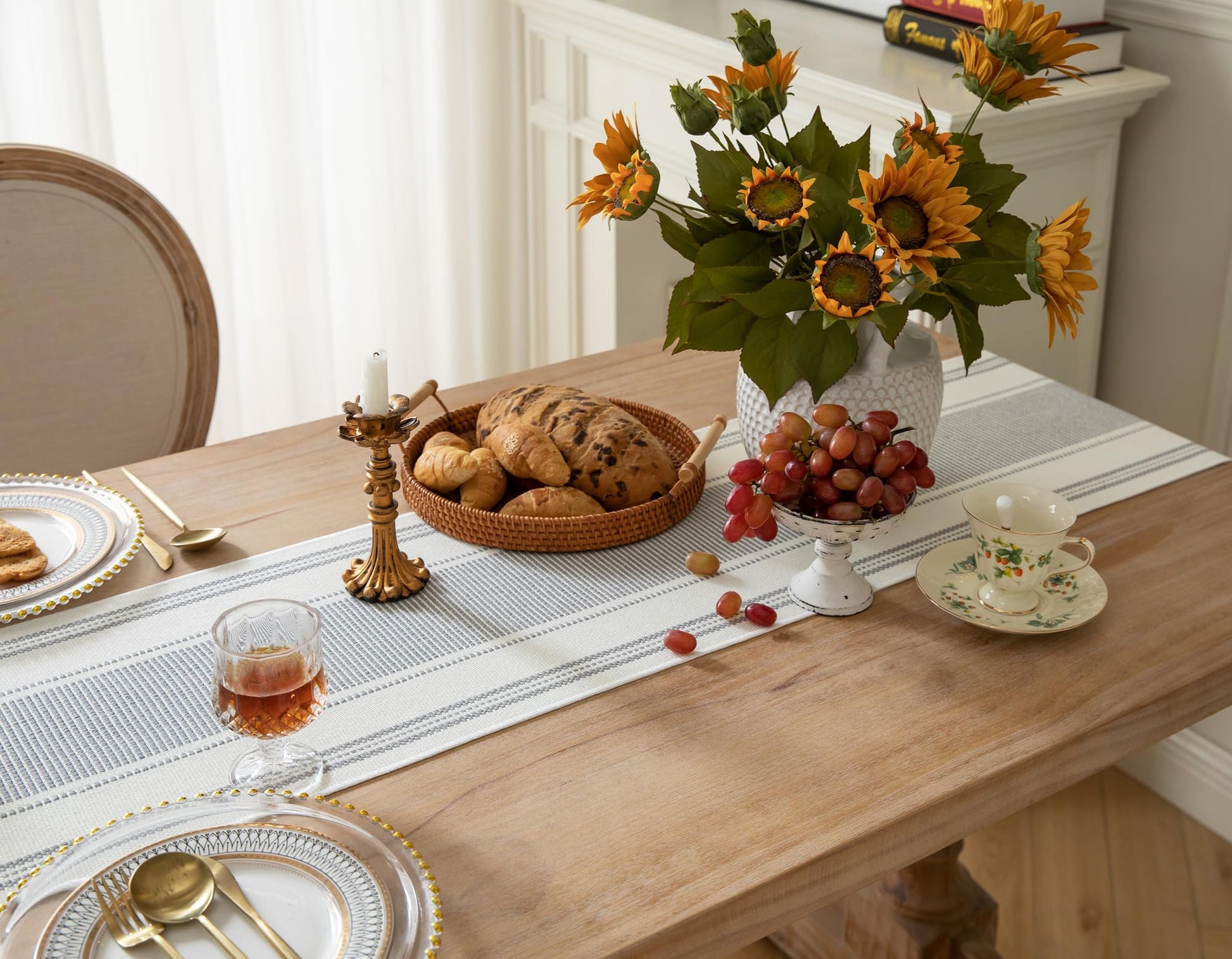 - 【Application】This boho runner for table is a great accent piece for more places than your dining room table! Try this modern farmhouse table runner on an entry way, on top of a dresser, a picnic table, an office desk, dressing table or as a coffee table runner.And a great anniversary or birthday gift.
