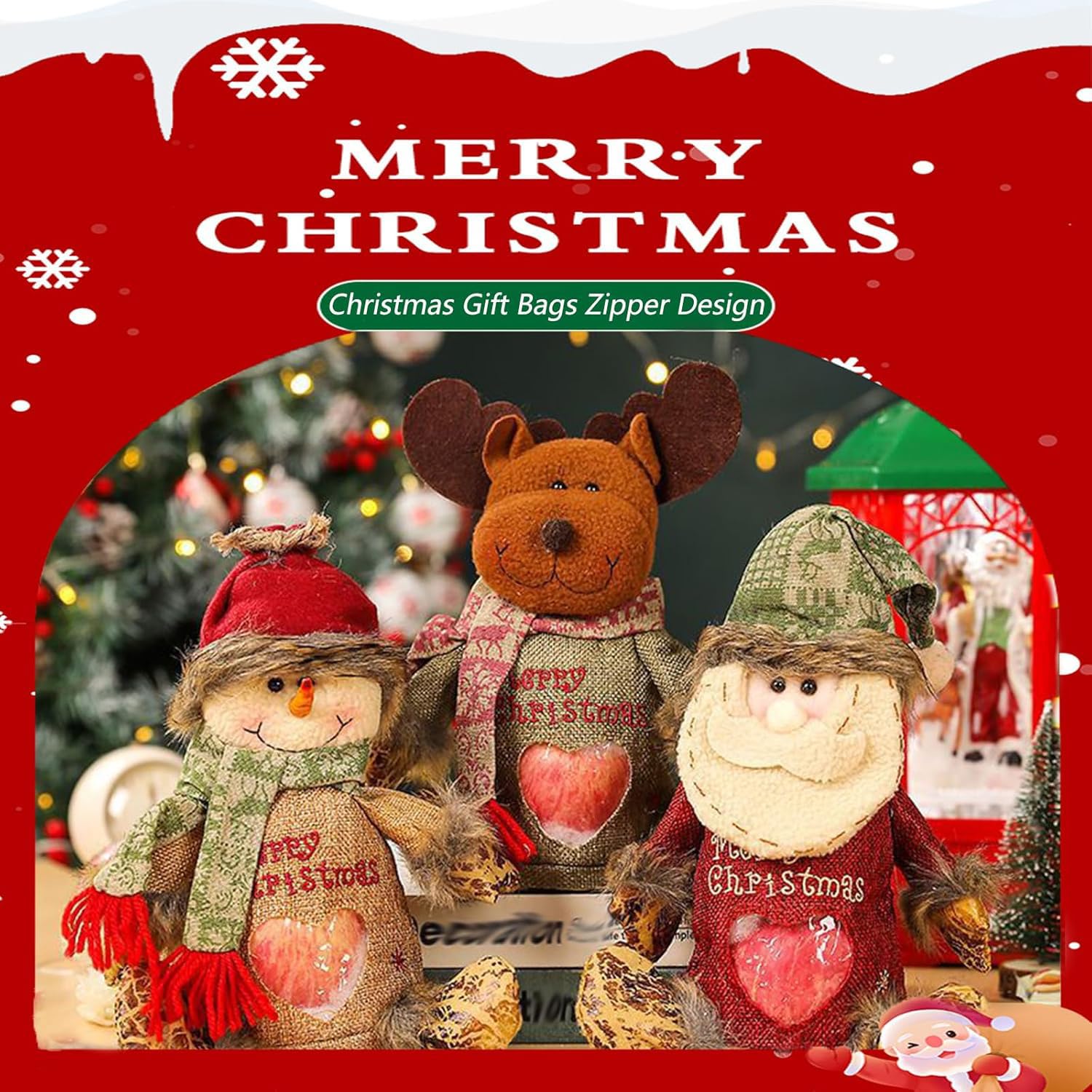 Christmas Gift Bags Zipper Design, Christmas Zipper Gift Bags, Fabric Christmass Gift Candy Bags For Party And Festival (Mix)