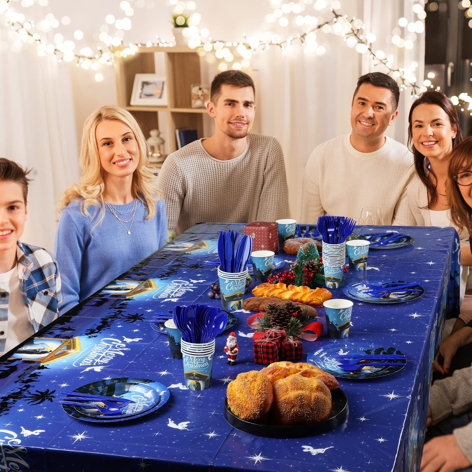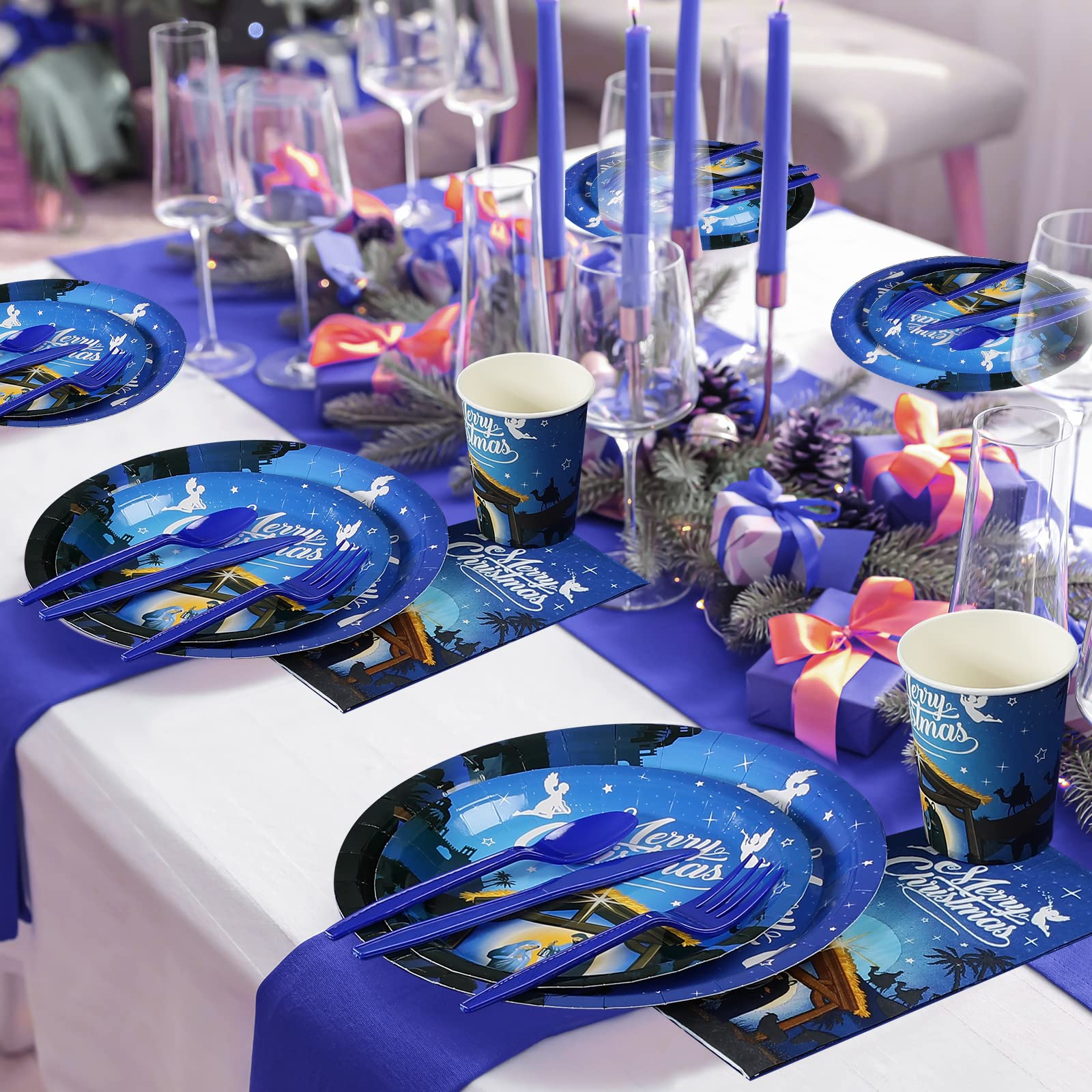 Christmas Nativity Party Supplies, Christmas Nativity Plates and Napkins Set, Disposable Jesus Holy Night Paper Plates Napkins Cups Knives Spoons Forks for Xmas Winter Holiday Party Decors, Serve 25