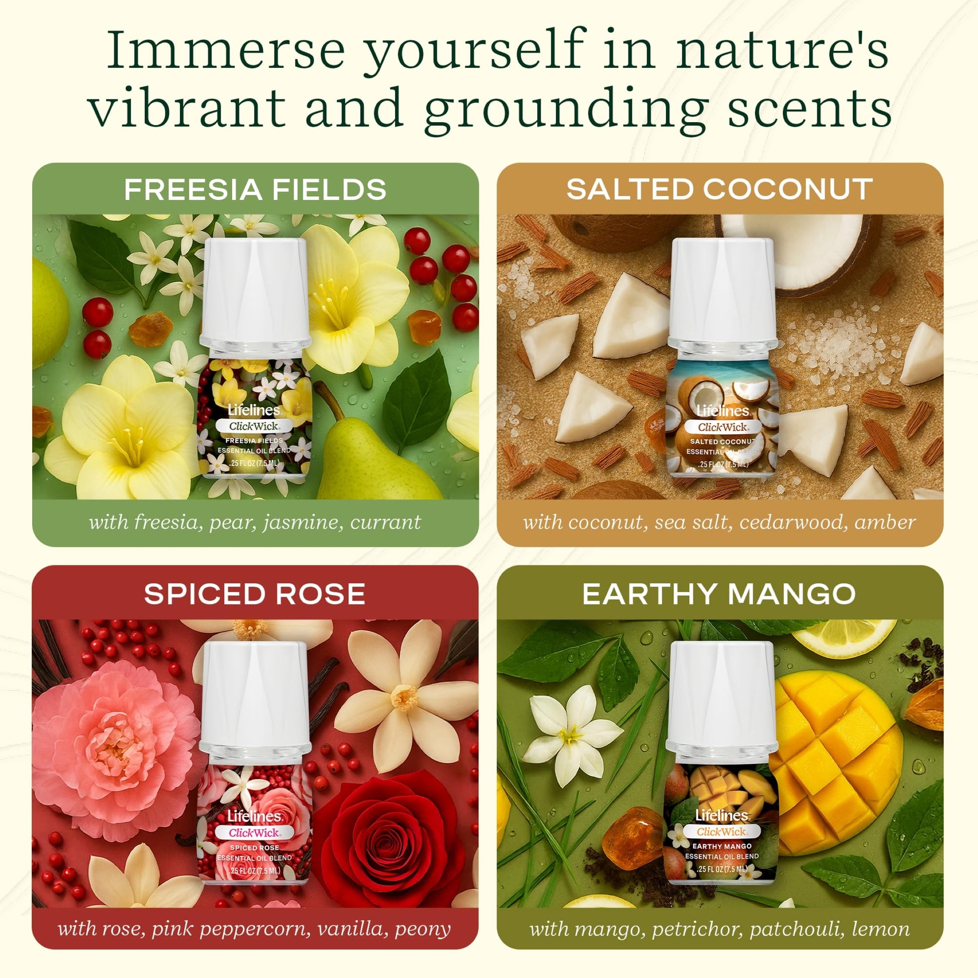 ClickWick Essential Oil Blends for Lifelines Diffusers, 4-Pack Lush Earth Collection - Essential Oil Blend Refill for Candle, Plant & Shower Aromatherapy Diffuser - Fragrance for Diffusers