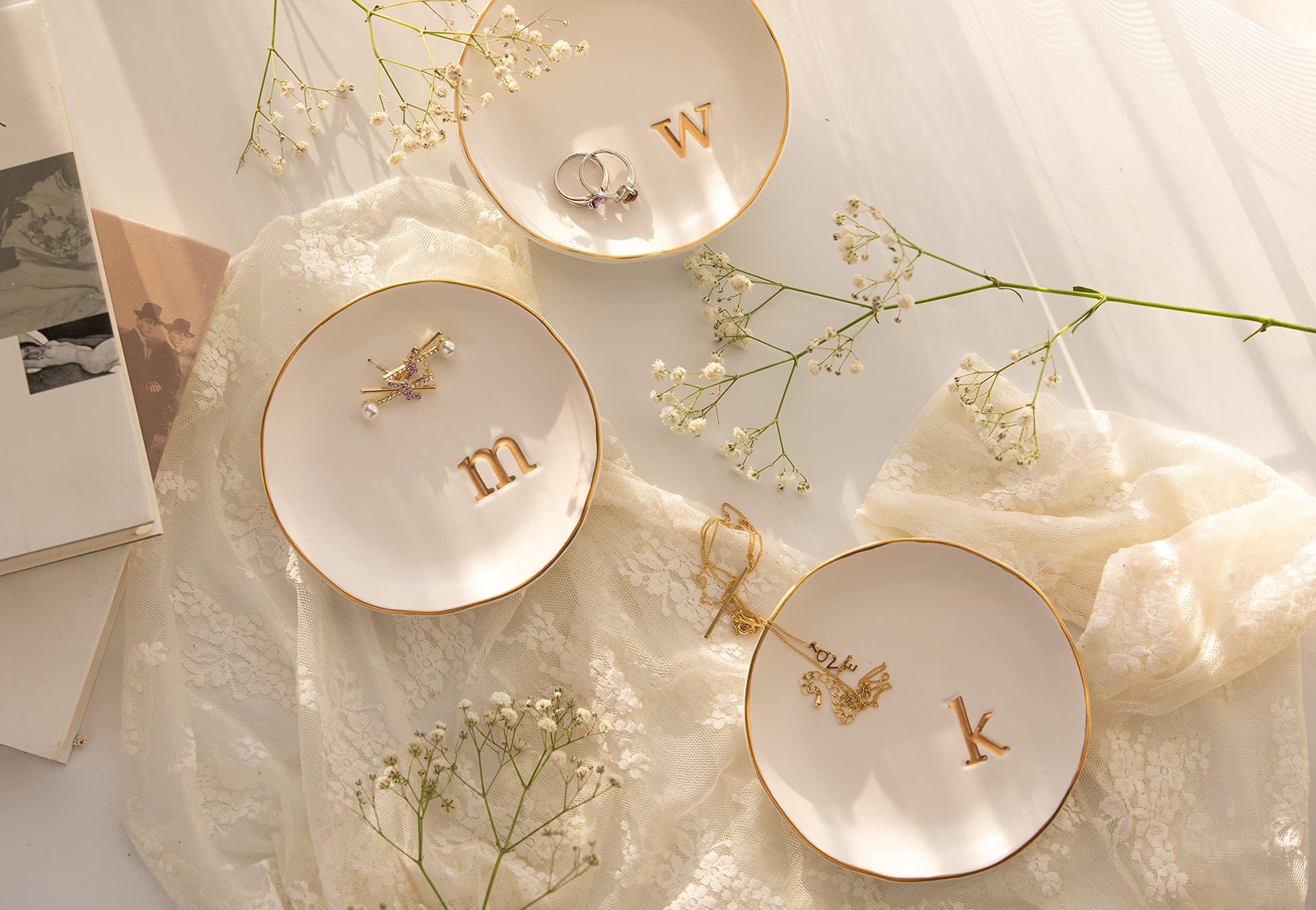- 【Dimensions】: This monogrammed ceramic jewelry dish measures 4.75 x 4.75 inches
