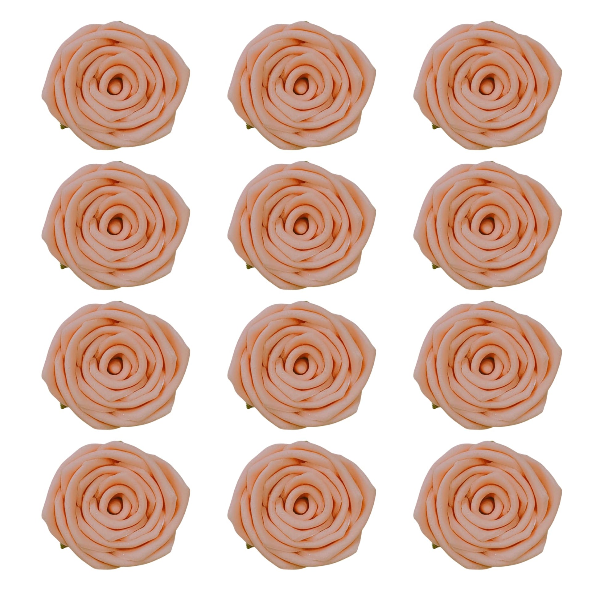 Confect Edible Rose Topper | Pretty Peach Pearl Edible Rose Toppers for Cakes, Cupcakes & Doughnuts | Perfect for Cake Decorations & Cupcake - Vegan, Dairy-Free, Palm Oil-Free - Pack of 12