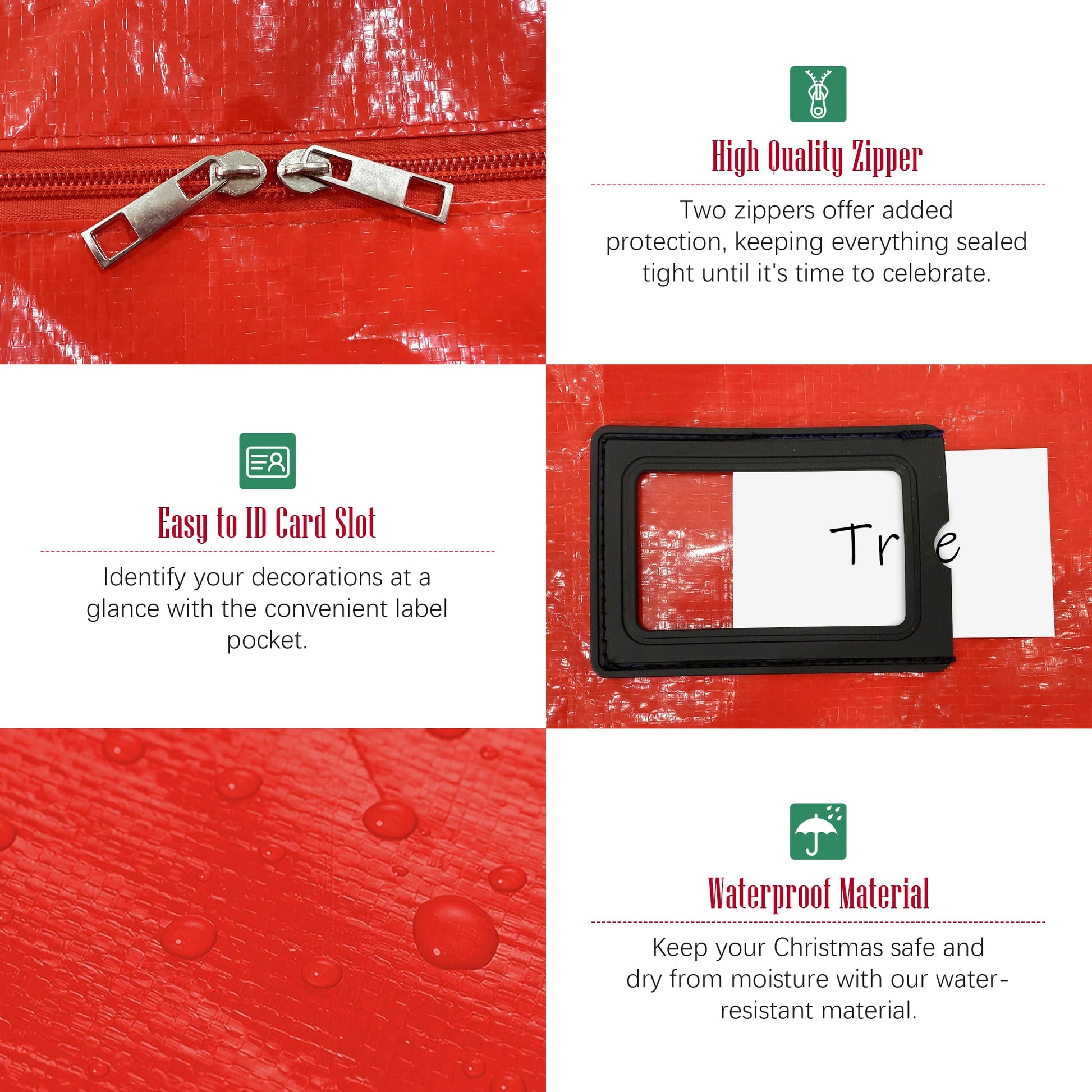 - 🌲PEACE OF MIND: Safeguard your treasured holiday decorations from dust, moisture, and pests with our Christmas tree storage bag. Rest assured that your tree will remain in perfect condition until it's time to unpack it next season.