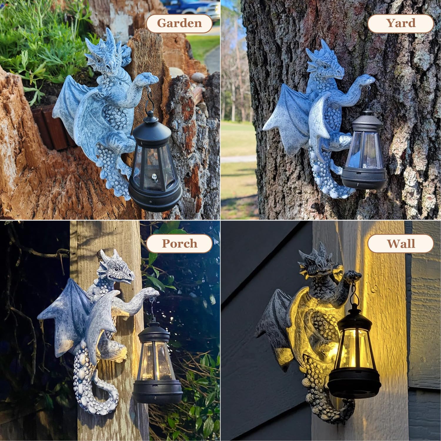 • 🎨【Artisanal Elegance】This 23.5 cm resin dragon statue employs advanced carving techniques to replicate legendary draconic features, including intricate scale textures. A groove on its back ensures secure placement on walls or tree branches, seamlessly transitioning from indoor decor to outdoor garden displays