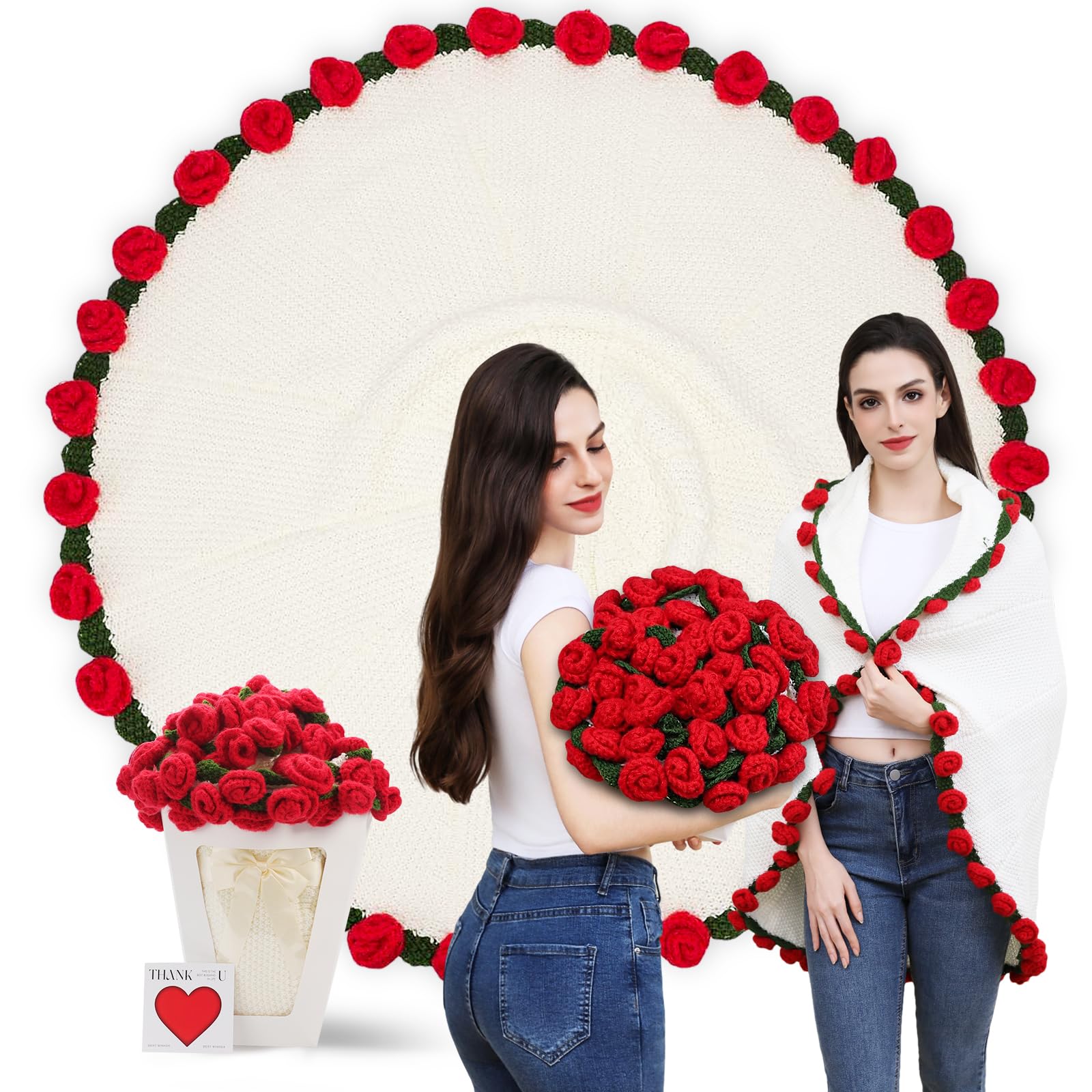 Duryeo Stocking Stuffers for Women, Crochet Rose Flower Bouquet Blanket, Christmas, Valentines Day, Wedding, Anniversary, Birthday Gifts Ideas for Mom, Grandma, Girlfriend, Wife, Sister, Couple