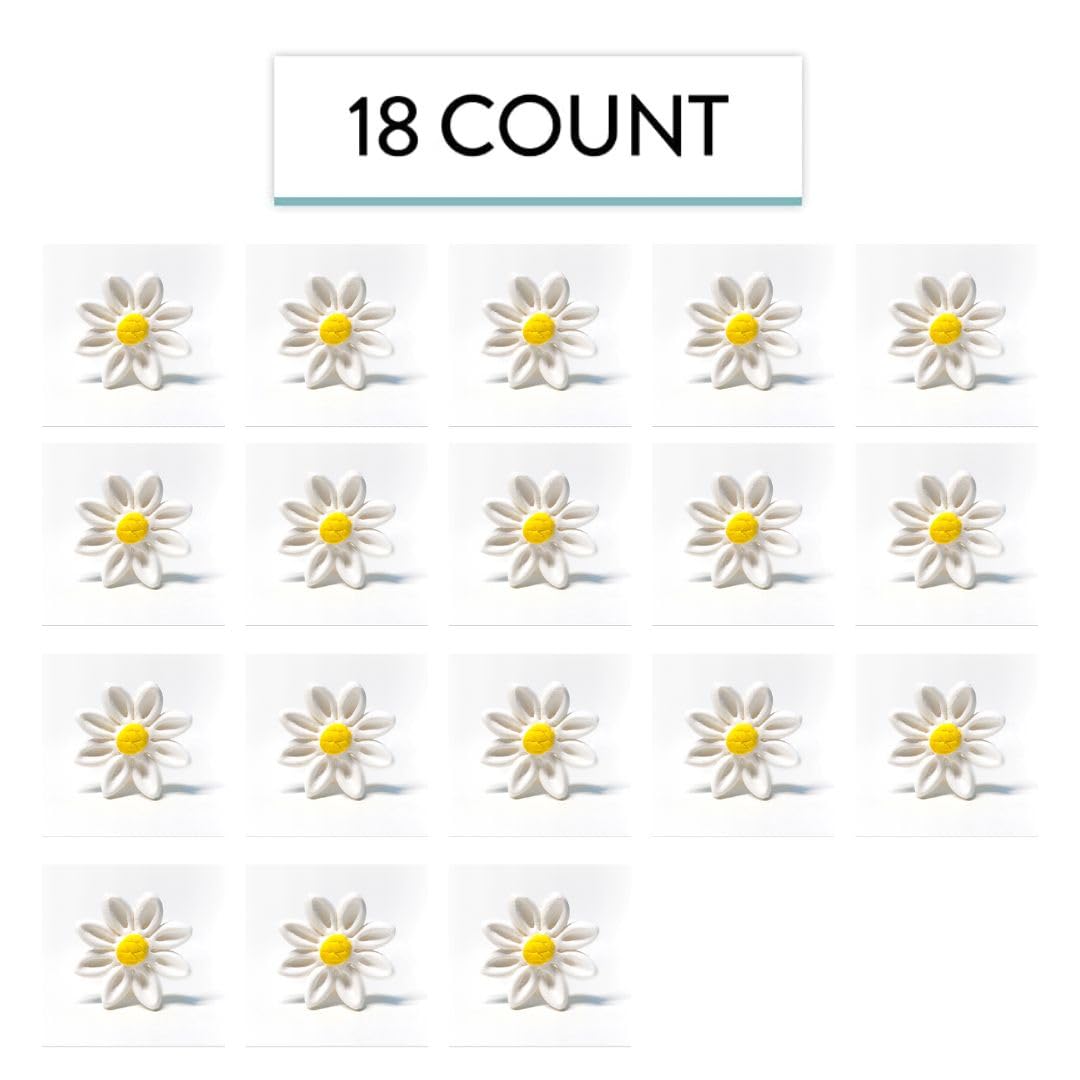 Edible Daisy Cake Decorations, 18 Count White and Yellow Sugar Flowers, Unwired 1 Inch, Daisy Cupcake Toppers, Edible Flowers Cake Decorations by Chef Alan Tetreault, Global Sugar Art