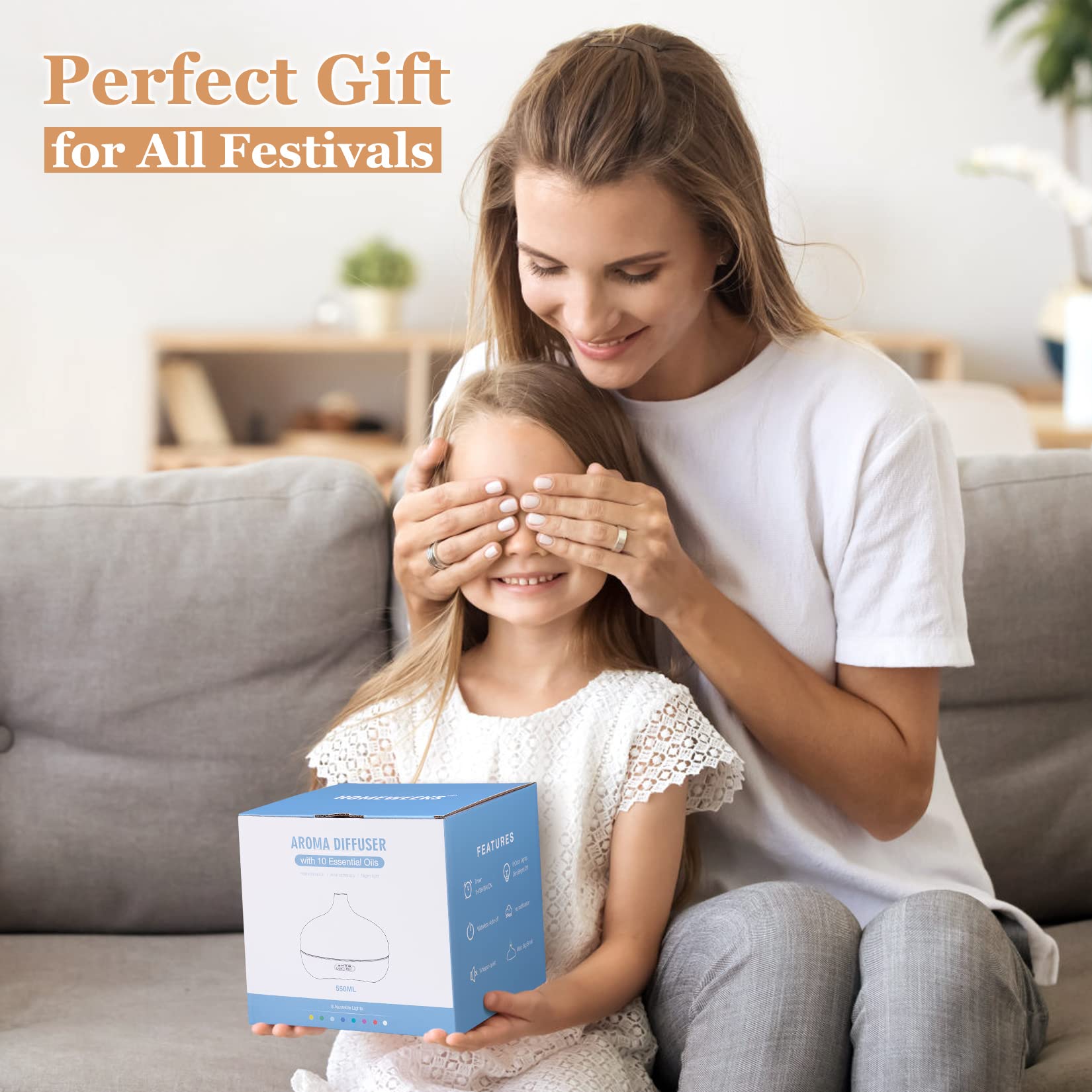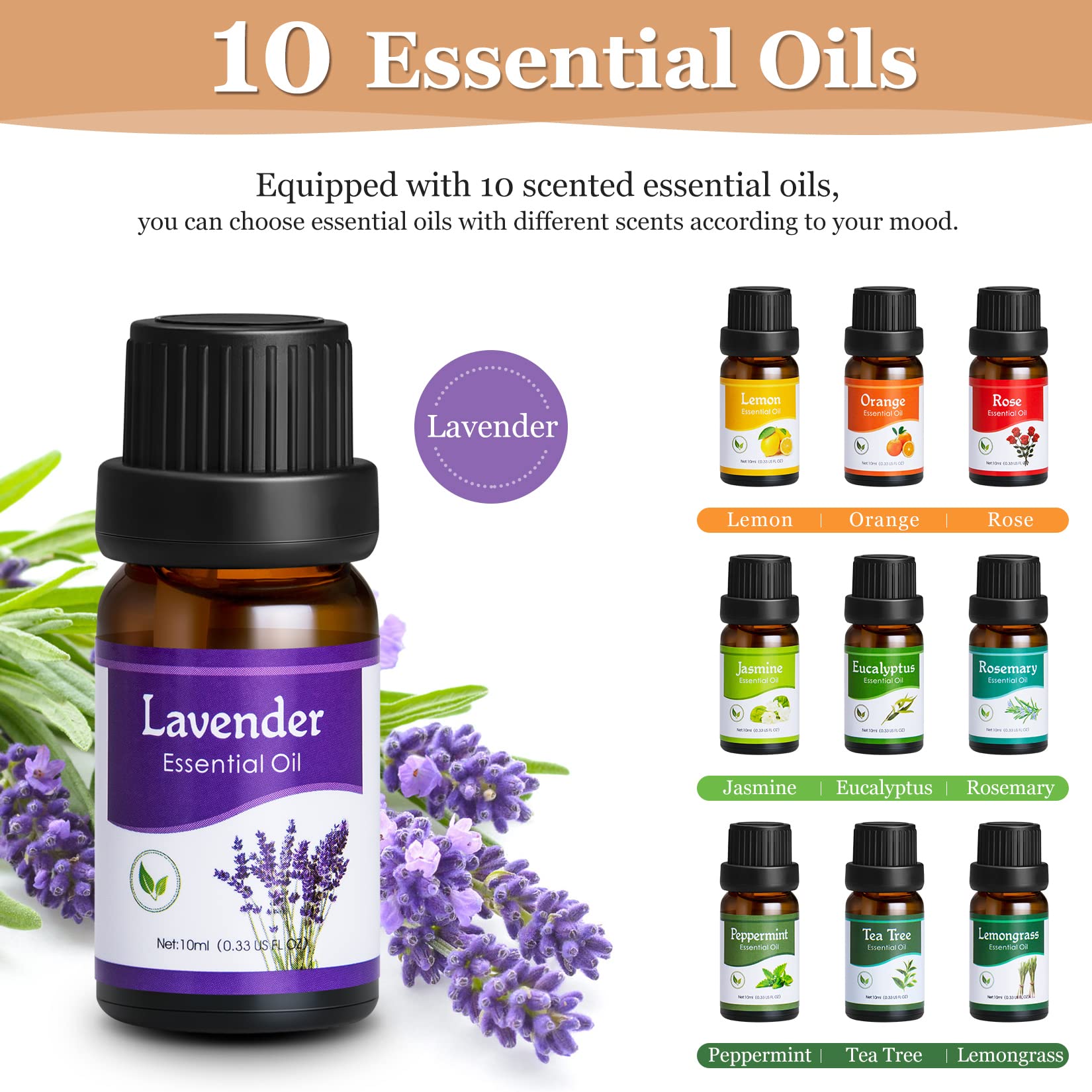 - WHAT YOU GET: 1x 550ml diffusers for essential oils, 10x essential oils, 1x adapter, 1x user manual and we provide you with friendly customer service. If you have any questions, please contact us