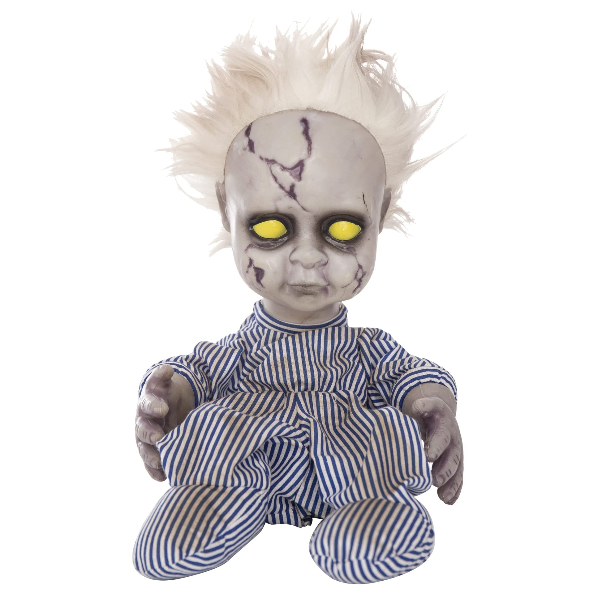 EVAPLUS 11inch Halloween Haunted House Crying Baby Terror Decoration Toy, Animatronic Roaming Creepy Doll Halloween Decoration,Haunted Sound Activated Holiday Prop with Battery Operated Control