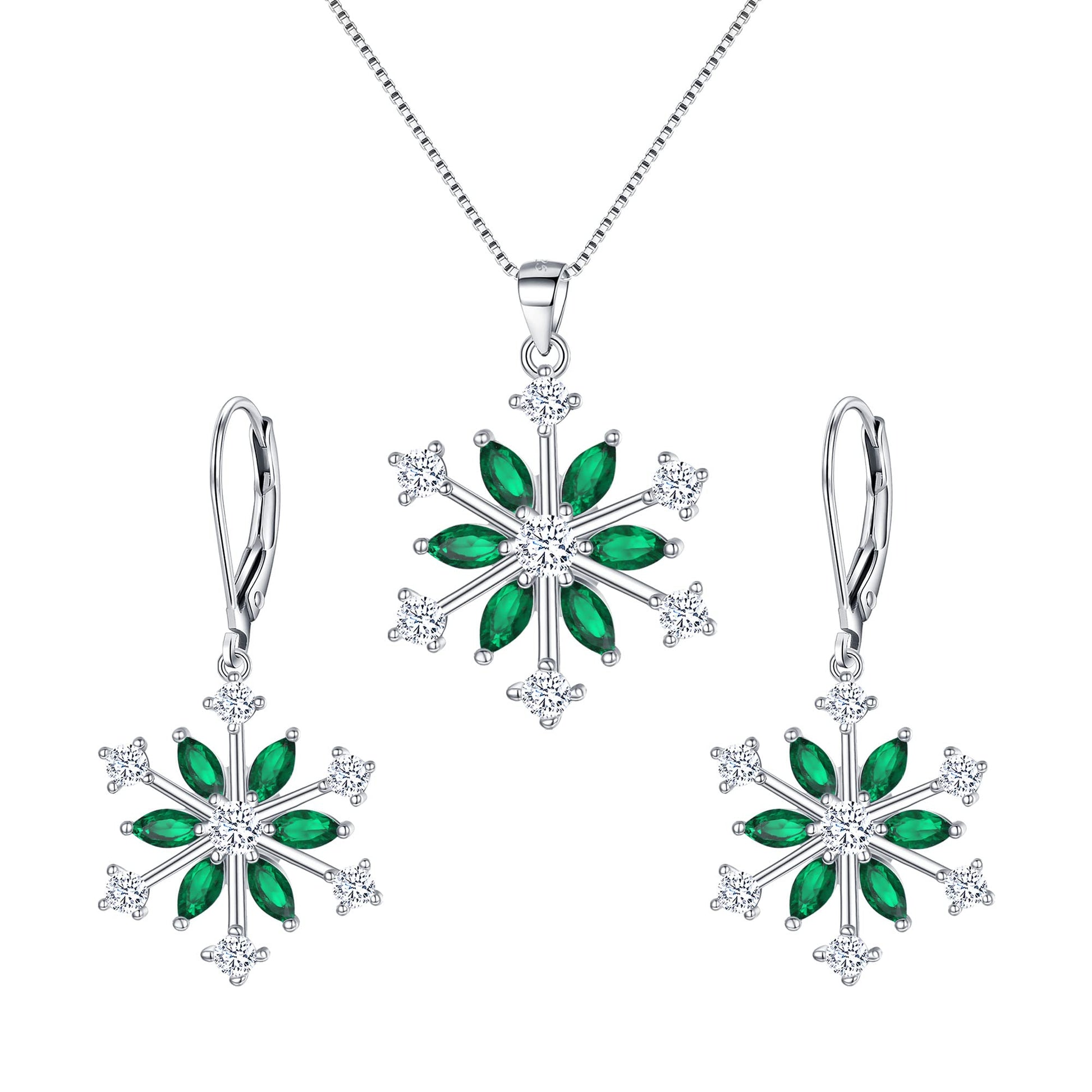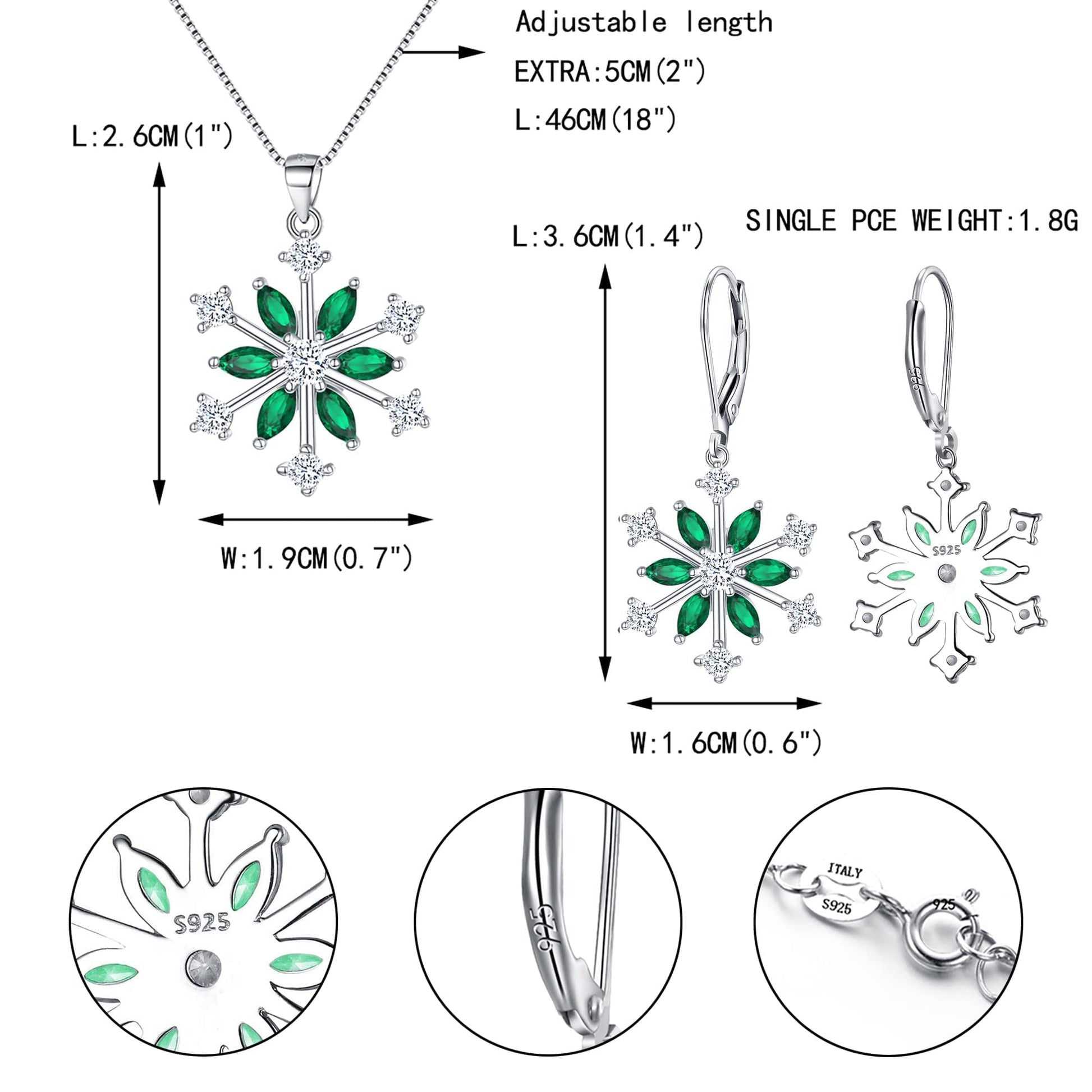 EVER FAITH Snowflake Jewelry Set Sterling Silver Winter Accessory Sparkle Green CZ Flower Necklace Leverback Earrings Sets