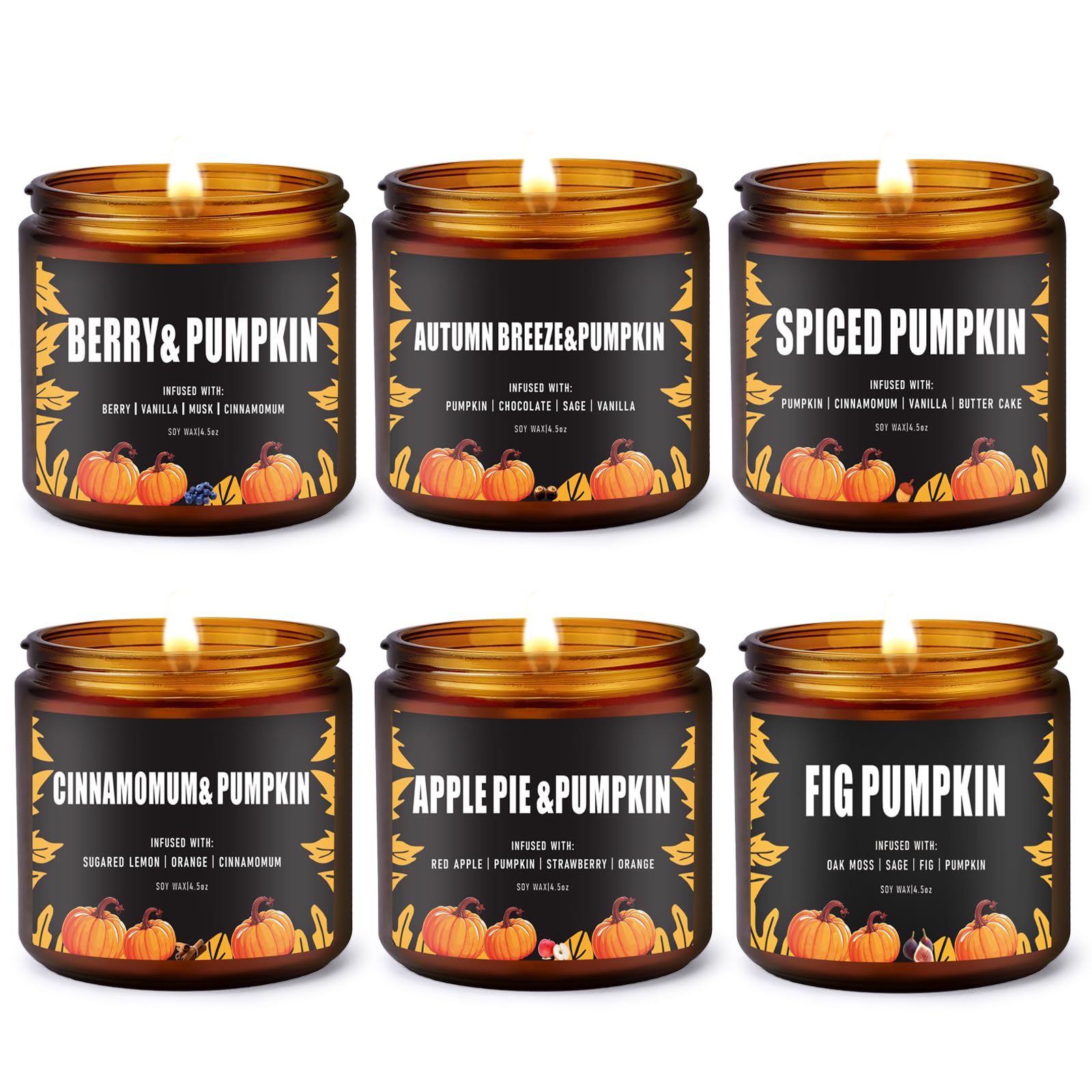 Fall Candle Set/6Pack Pumpkin Scented Candles for Home - Candle Gifts for Women Men, Soy Candles | Jar Candle Scents of Berry, Sugared Lemon, Spiced Apple Pie,Autumn’S Breeze,Cinnamon,FIG Pumpkin