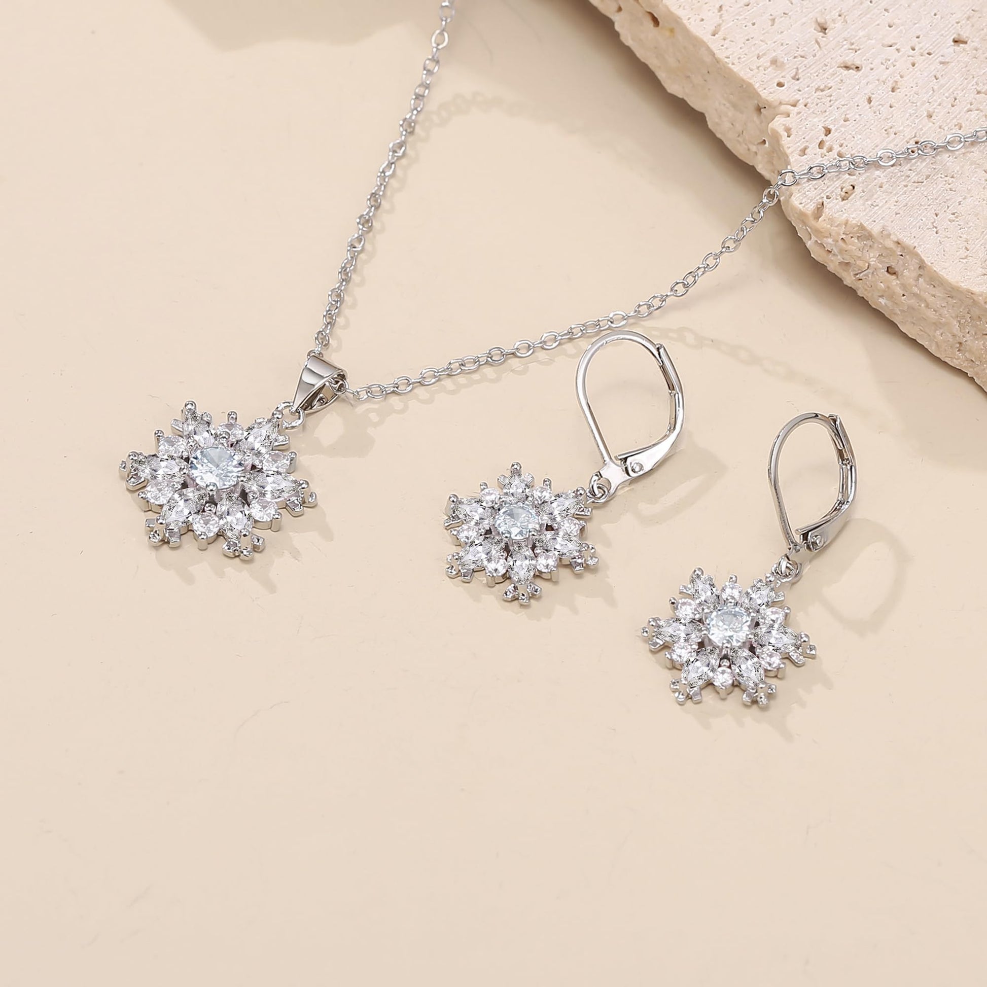 FANZE Fashion Cubic Zircon Snoweflake Jewelry Set for Women Snow Dangle Earring Hypoalllergenic Trendy Gift for New Years Chrismas Thanksgiving Clear Sliver-Tone