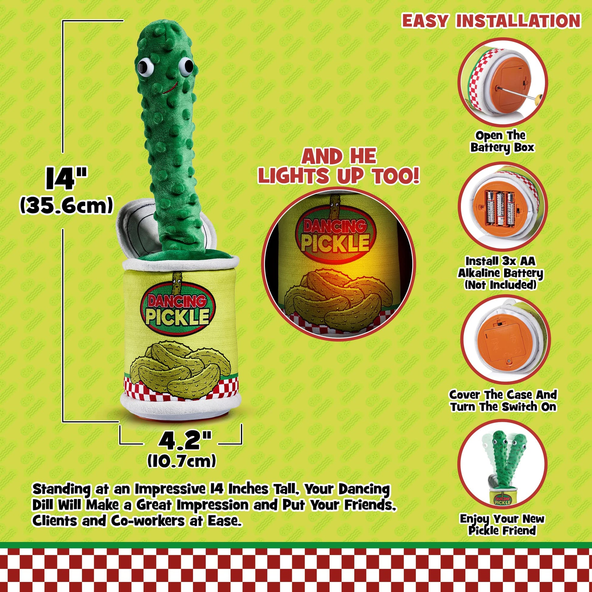 - YOUR ULTIMATE ICE BREAKER TOY: Get ready to pickle your brain with the wackiest conversation piece in town - the yodeling pickle toy! Made of soft plush fabric, this electronic marvel is sure to break the ice and get your guests talking. No more awkward silences - just endless fun and laughter with the singing, dancing, and even talking pickle