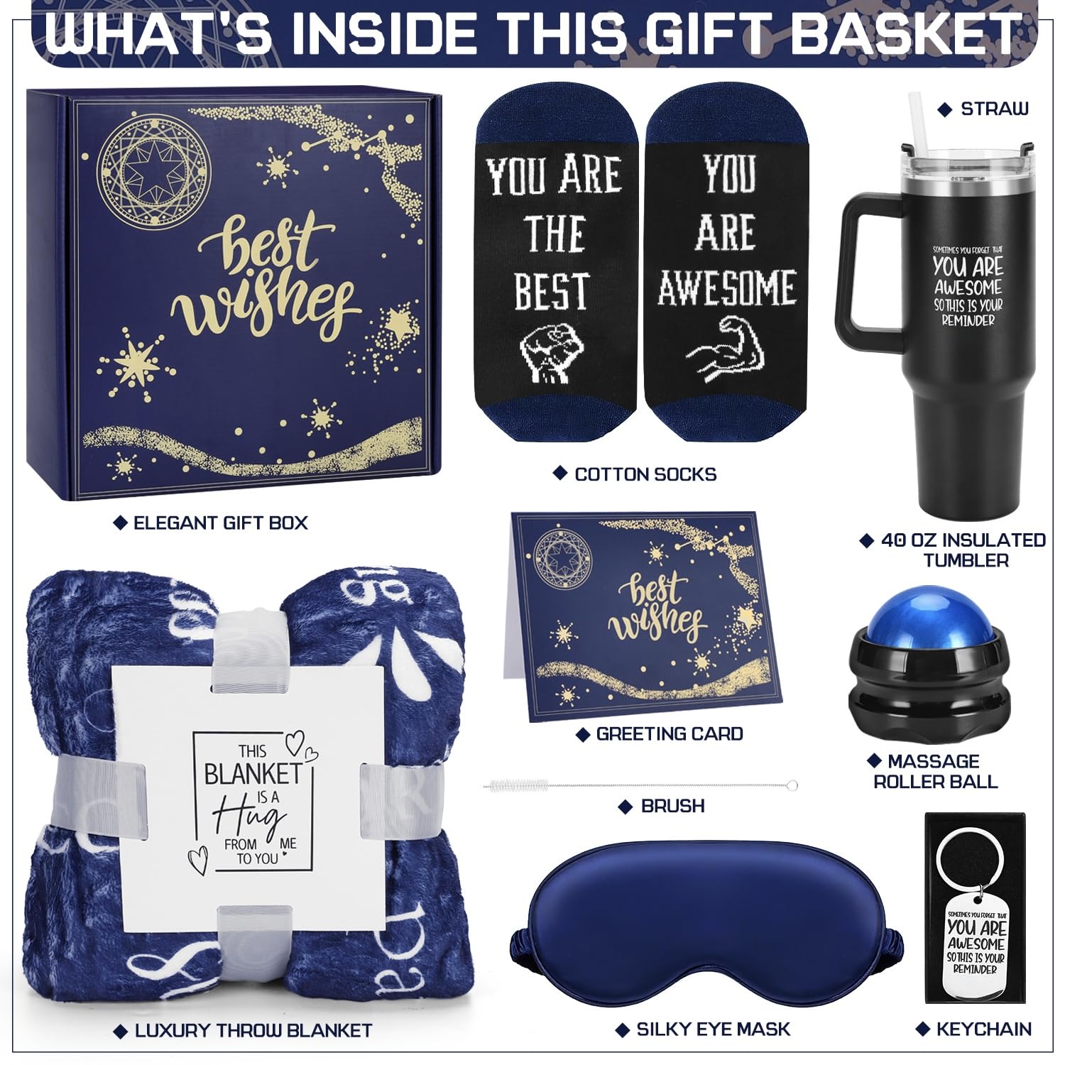 - Anniversary Gifts for Men: Show him how much he means to you with this anniversary gift set for men. Featuring premium items such as a luxury flannel blanket, 40oz insulated mug, and massage roller ball, this is the perfect gift box for husband or gift for boyfriend. Whether you're celebrating a relationship milestone or just looking for unique gifts for men, this set will create unforgettable moments