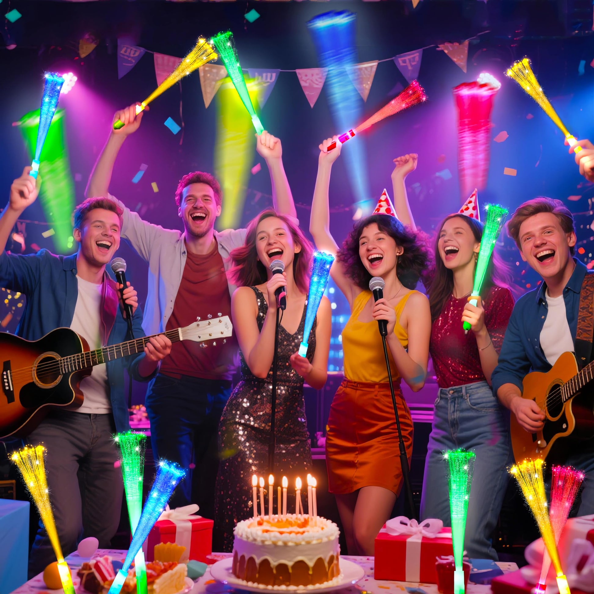 - 🌟【Large Glow sticks bulk party supplies 】Our pack include light up wand.The fiber optic wand have sufficient quantity and multiple colors,nice for glow stringing, freehand and light shows performances at party or music concert.It's cooler than the normal lights, so you can hold it up and move your body following the music.