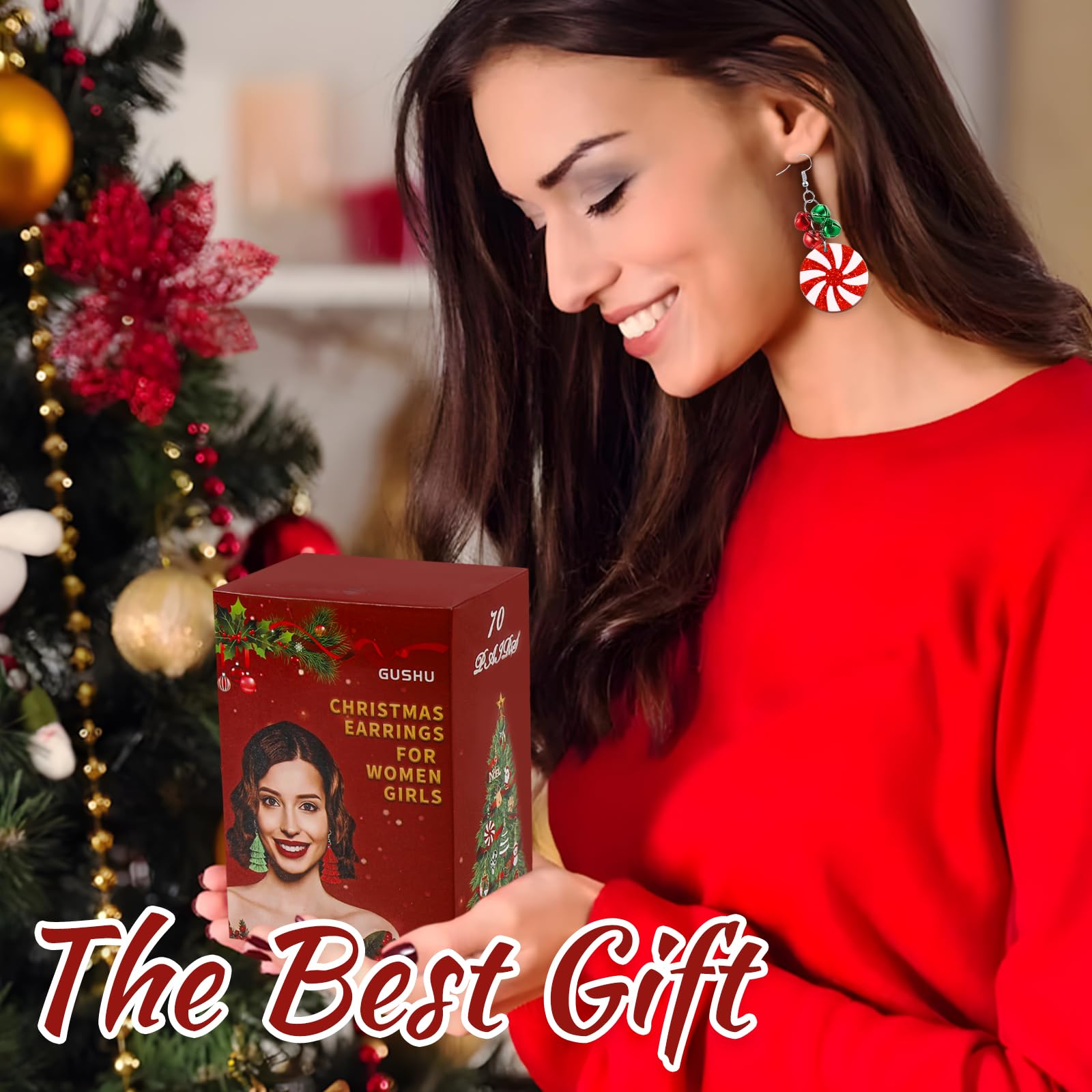 - CHRISTMAS THEMED EARRINGS: This holiday season, our christmas earrings will add a strong festive touch. This christmas earrings for women set includes 70 pairs of christmas dangle earrings and christmas studs that will add an elegant and inviting element to your holiday look.