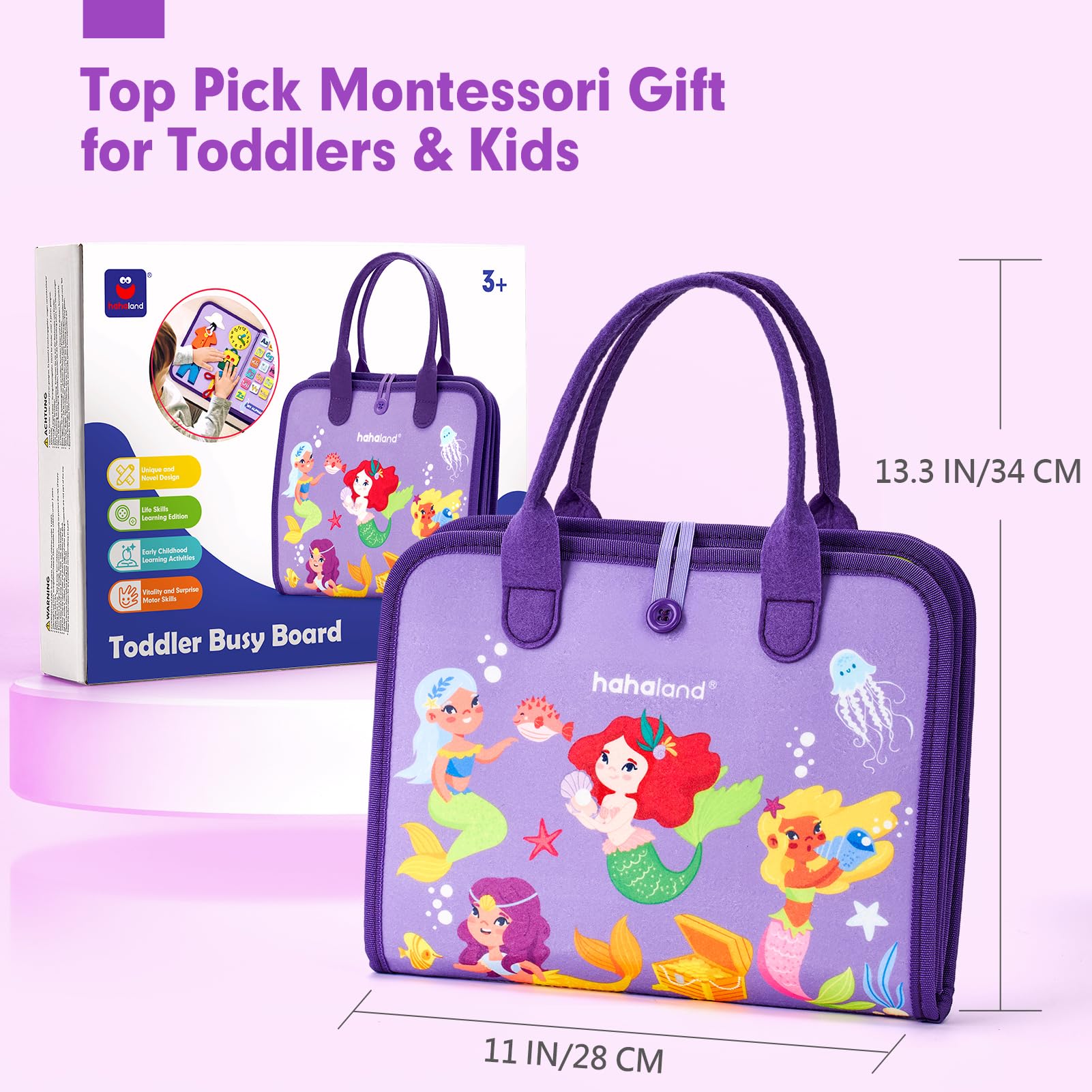 - 8 Pages in 1 Toddler Busy Board: A great busy board can keep your toddler entertained for a while and provide relief for parents. hahaland montessori busy board includes life skills, alphabet, number, shape, color, animal and weather learning activities that everything toddlers would love to play and encourages toddler play actively and independently.