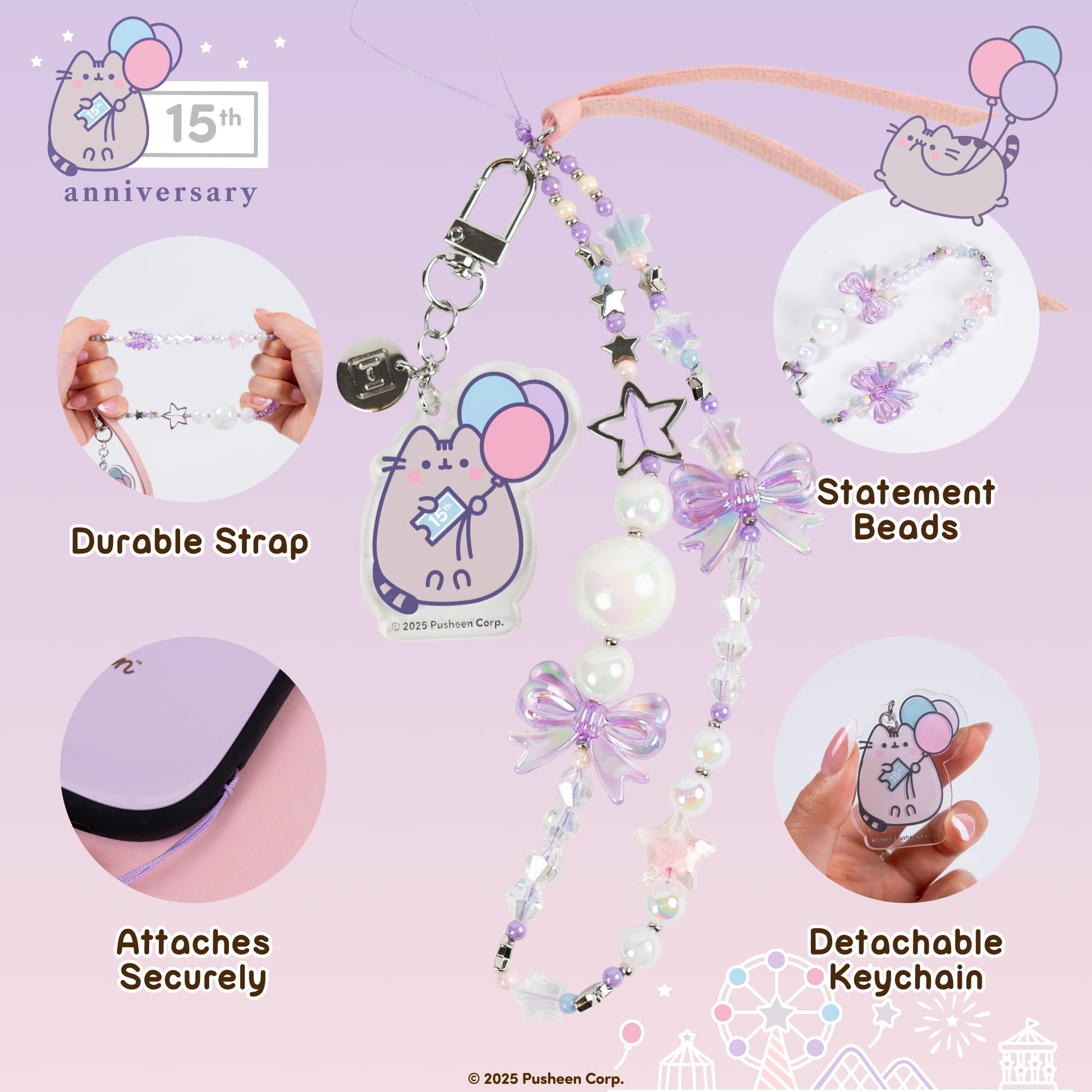 - PUSHEEN 15th ANNIVERSARY BEADED CHARM STRAP ♡ 2025 Limited Edition Supercute wristlet for phones, bags, purse, and more with colorful beads and star-shaped statement beads, plus an exclusive, limited edition detachable keychain charm featuring Pusheen’s 15th Anniversary celebration style! Only Available Year 2025~!