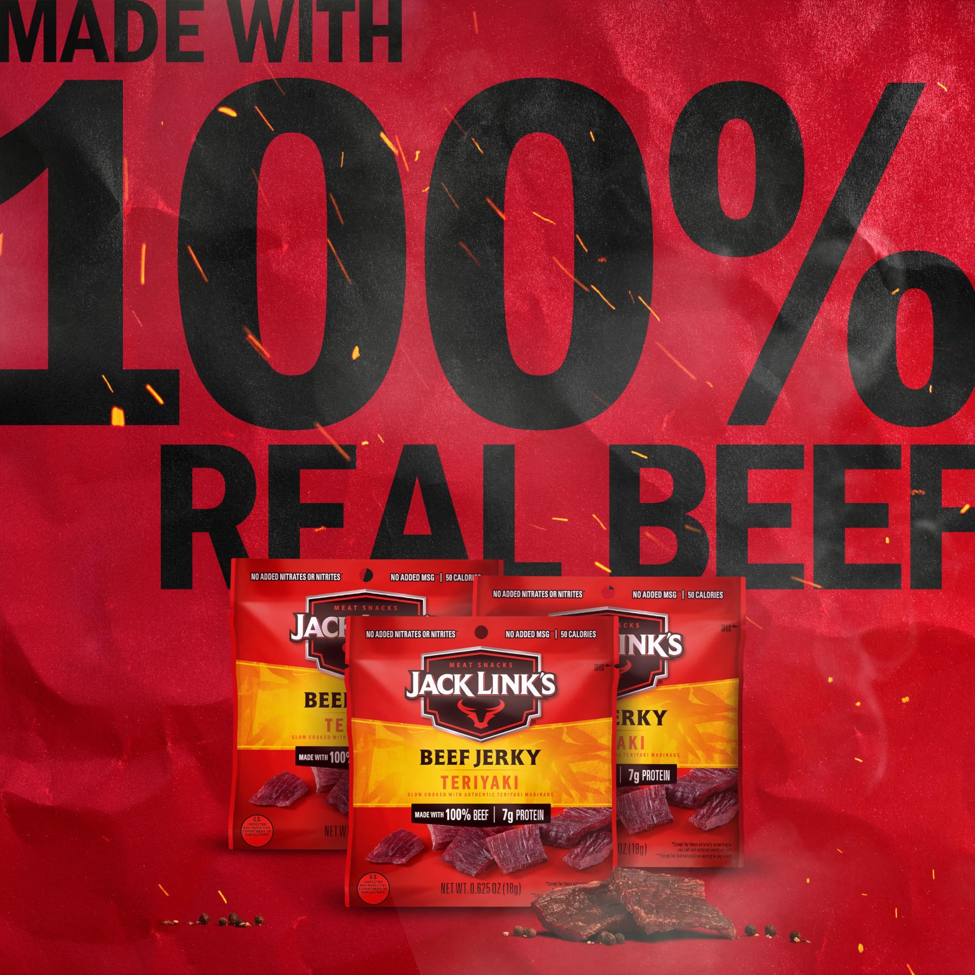 • MADE WITH 100% BEEF: Our Jack Link's Teriyaki Beef Jerky is made of lean cuts of 100% beef. The taste is so great that it makes a great jerky gift for men or women alike! Kids and teens can stay fueled up at school too with great tasting Jack Link's