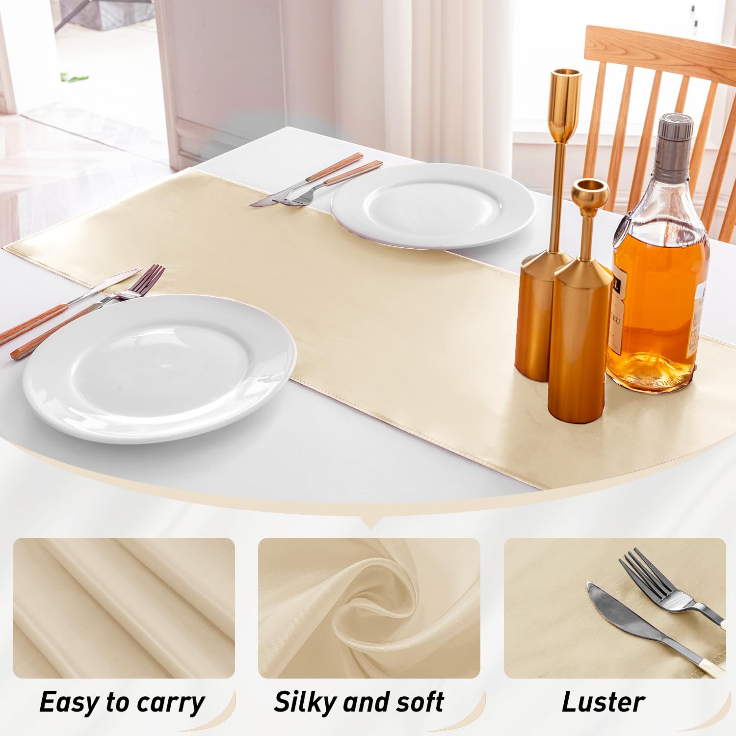 JEVIX 10 Pack Satin Table Runner 12 X 108 Inch Silk Table Runner for Party,Wedding, Birthday, Banquets,Decoration(Champagne)