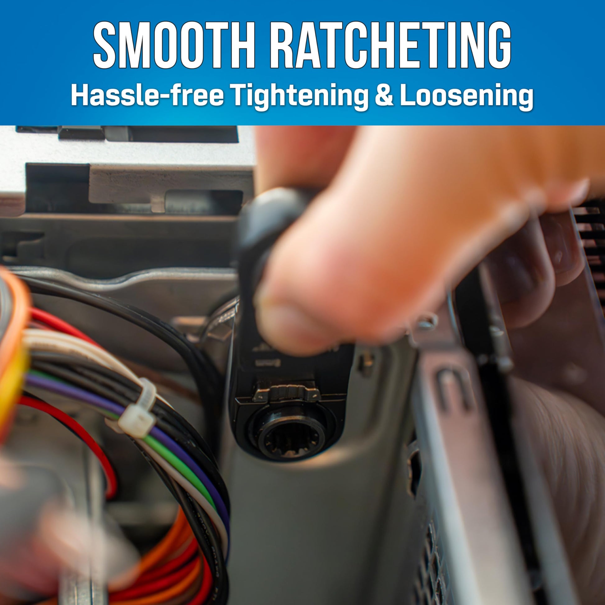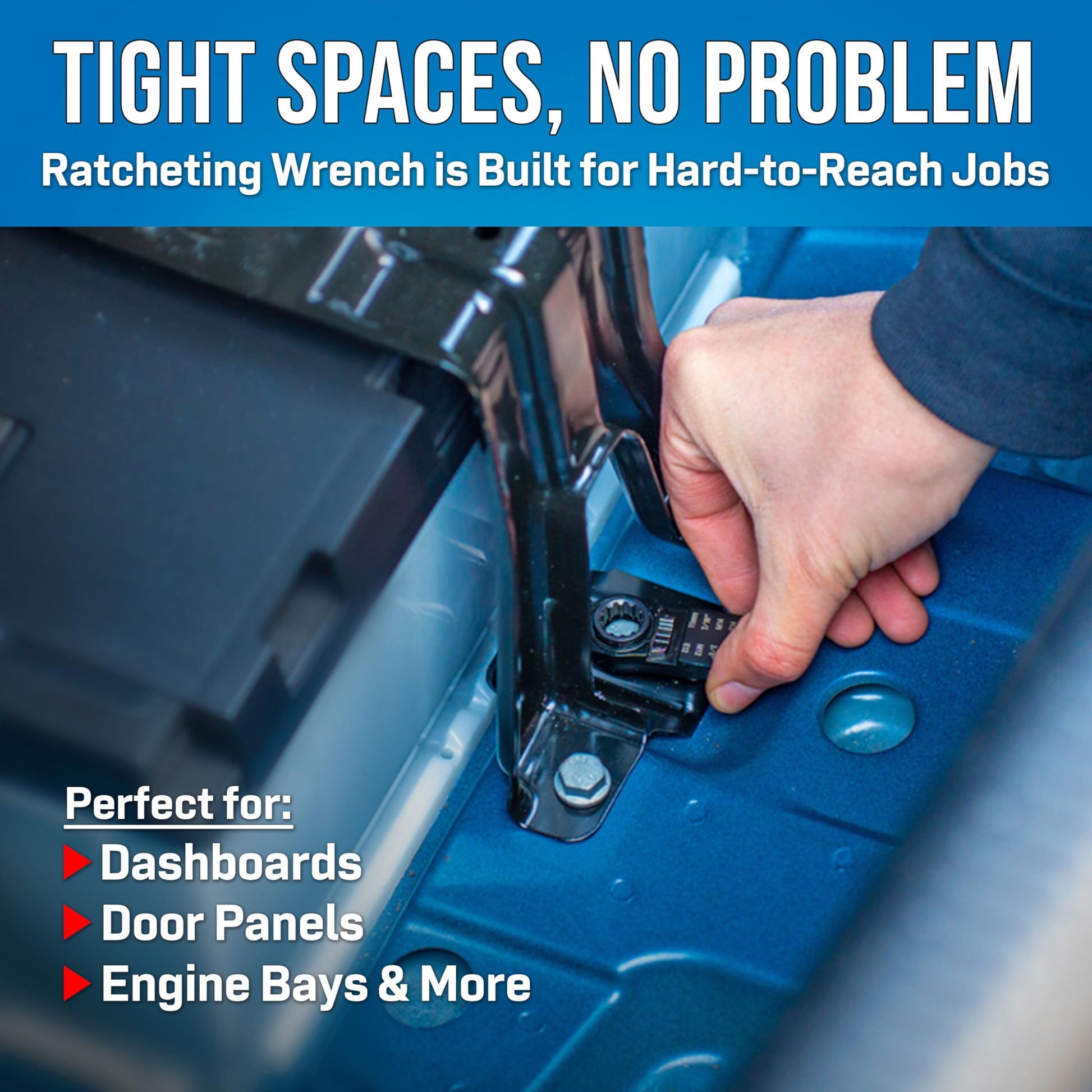 • EFFICIENT RATCHETING ACTION: Smooth ratcheting motion allows for quick and easy tightening or loosening of nuts and bolts.