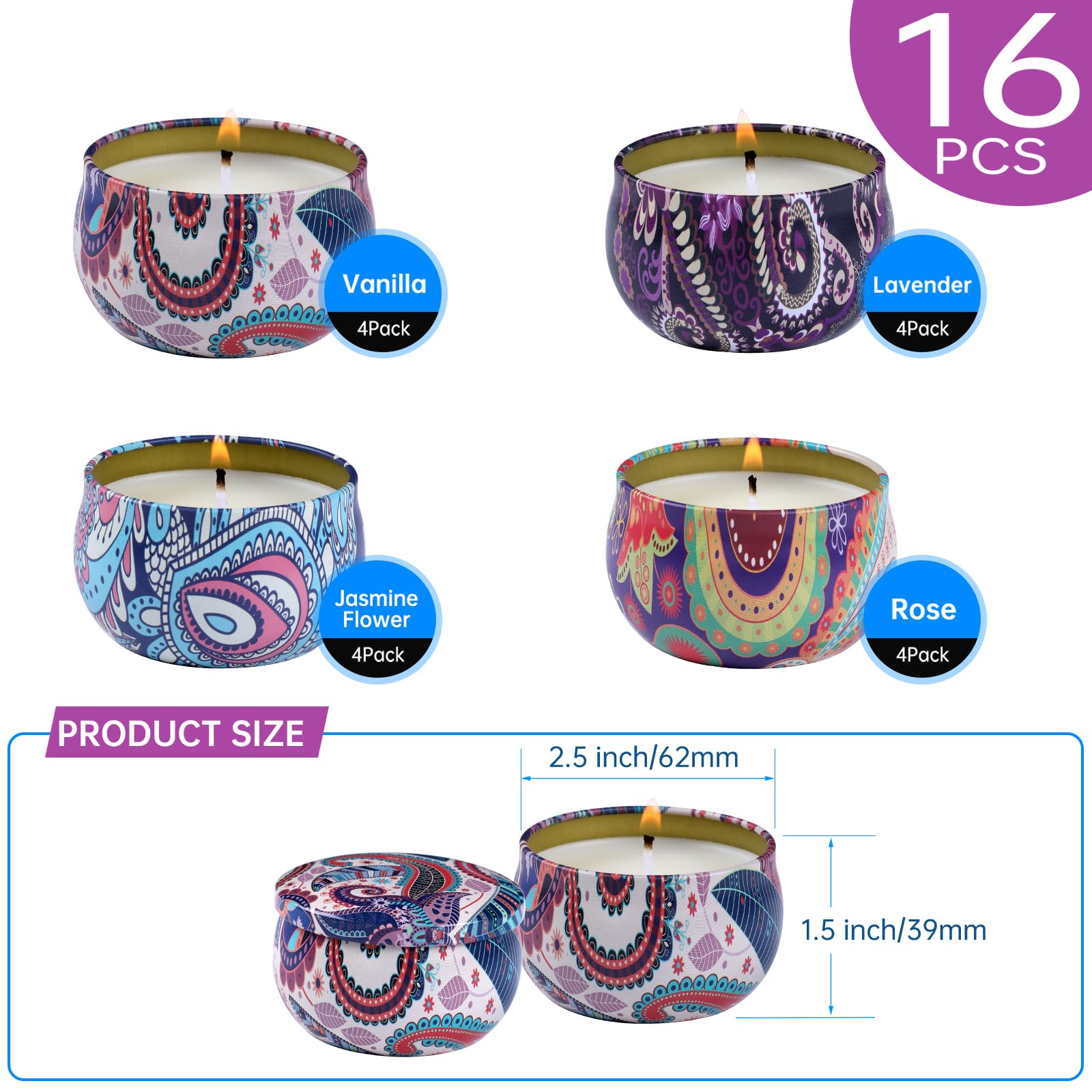 kedtui Scented Candles Gift Set, 16 Pack Aromatherapy Candle, Natural Soy Wax Travel Tin Candles for Home Scented, Ideal for Christmas, Birthday, Thanksgiving, Valentines Day Gifts