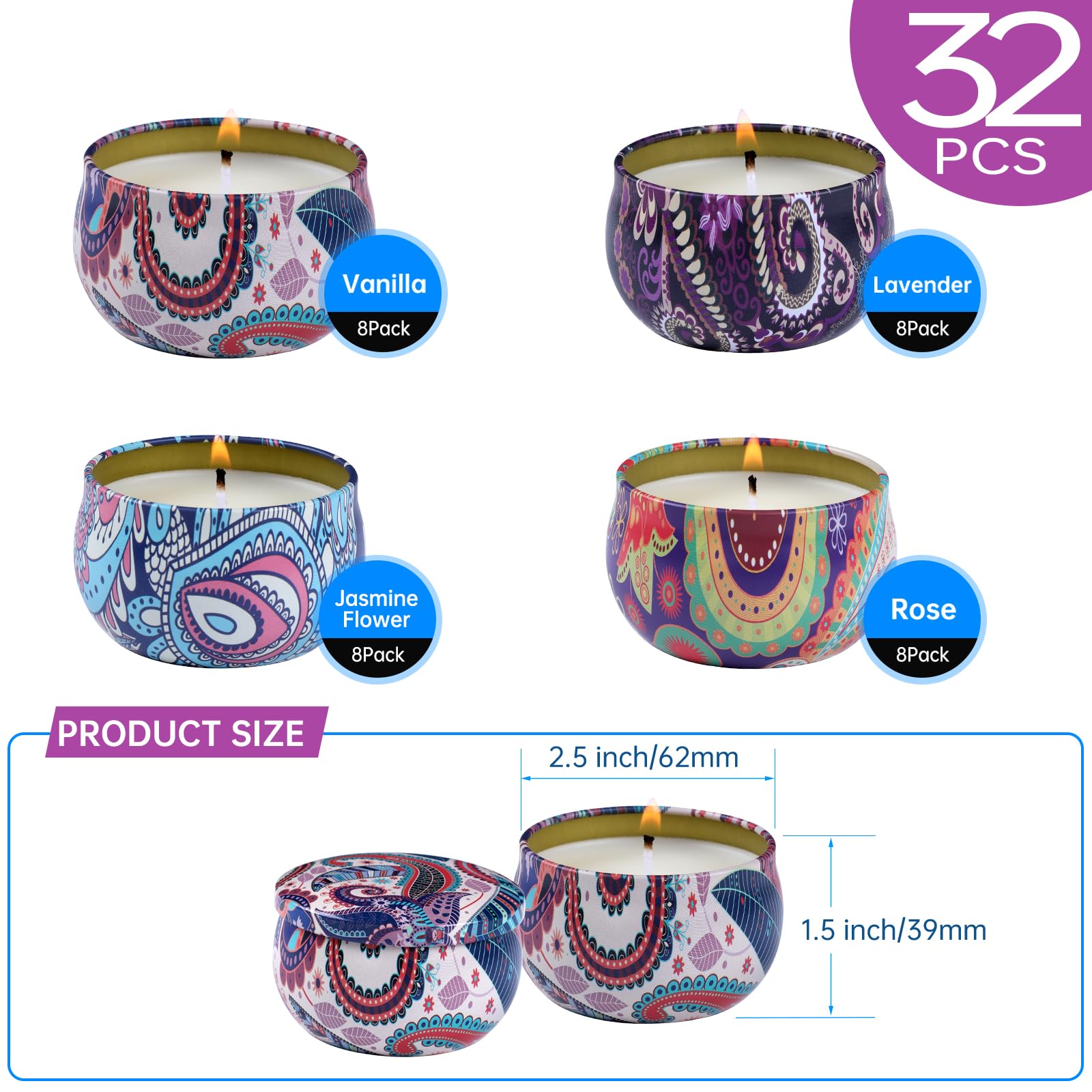 - LONG LASTING TIME: Scented Candles for Home, each jar candle 2.5 oz burning time approaches 15-20h. Portable Tin candles create comfortable aromatic bliss for you and your family.