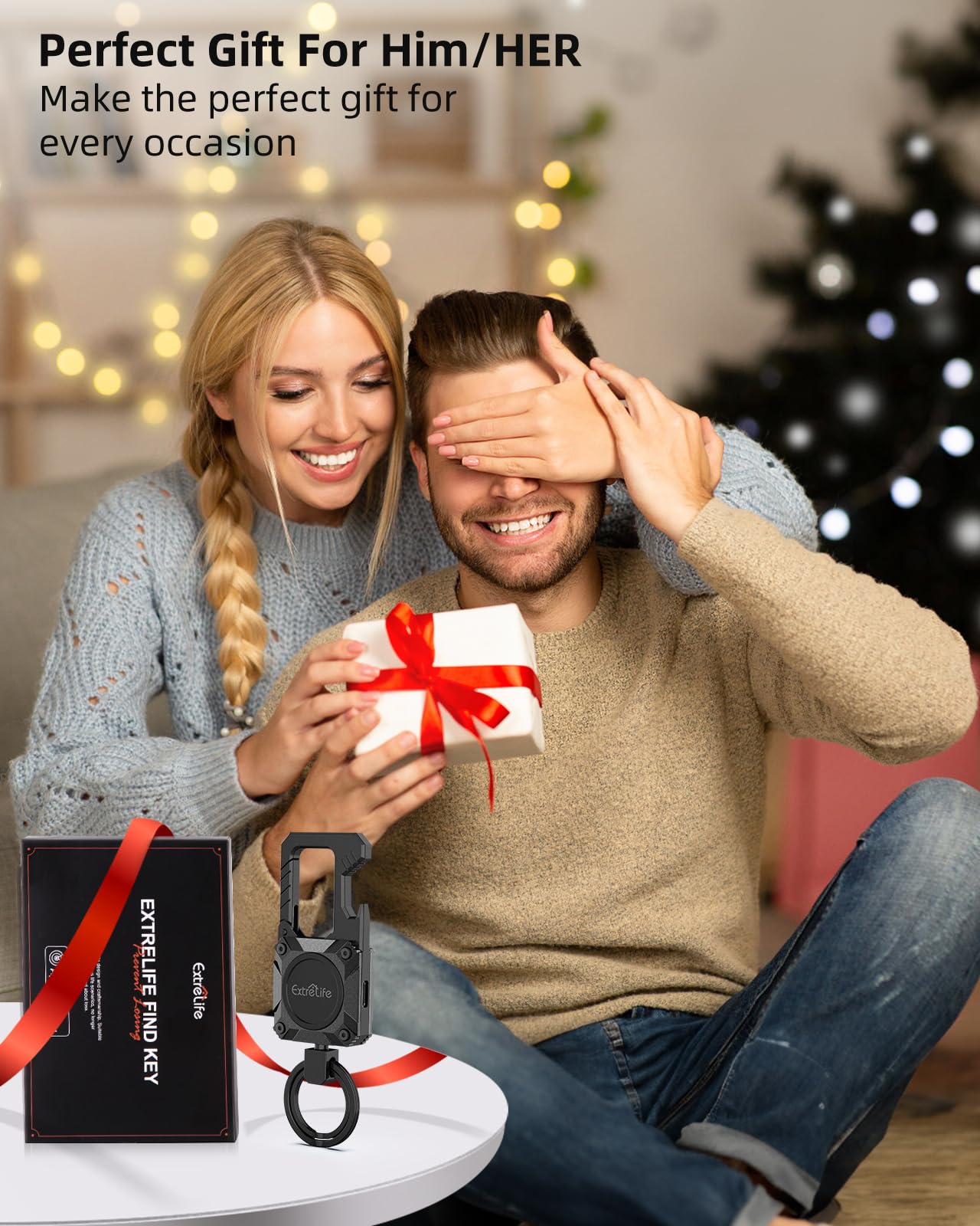 - 【Works with Apple Find My】 For iPhone owners,the Extrelife's latest Keychain is an easy top pick for tracking and locating your Key and items. With Apple’s Find My network has by far the largest number of devices, makes it more likely that you’ll recover what you’ve misplaced. It comes with 2 key rings and carabiner, so just connect and go.