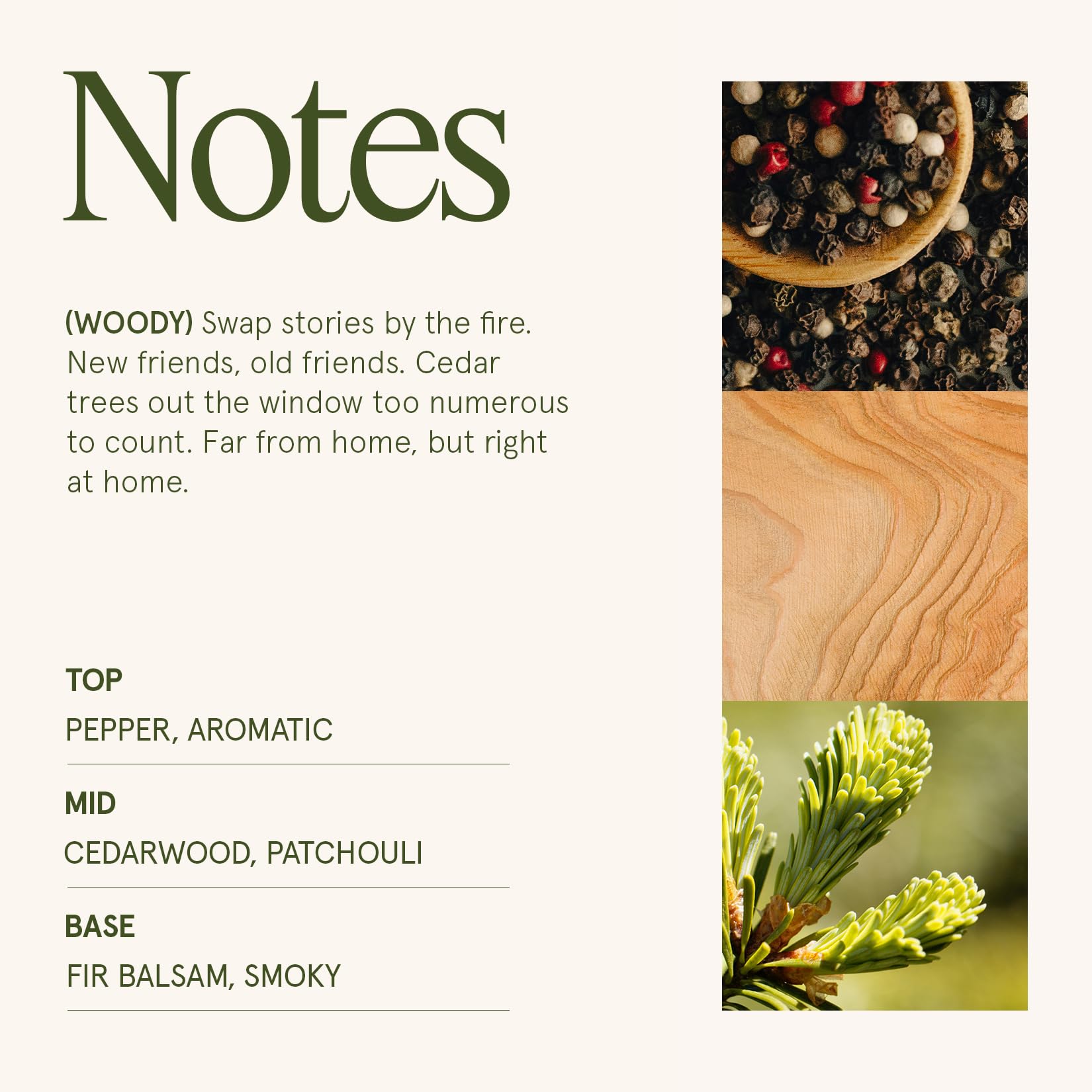 - BALSAM FIR & CEDARWOOD CANDLE - Crisp mountain air laced with refreshing cedar wood and earthy patchouli,then deepens into a forest of firbalsam, kissed by a wisp of campfire smoke. A reminiscent of a holiday family gathering under the evergreen conifer.