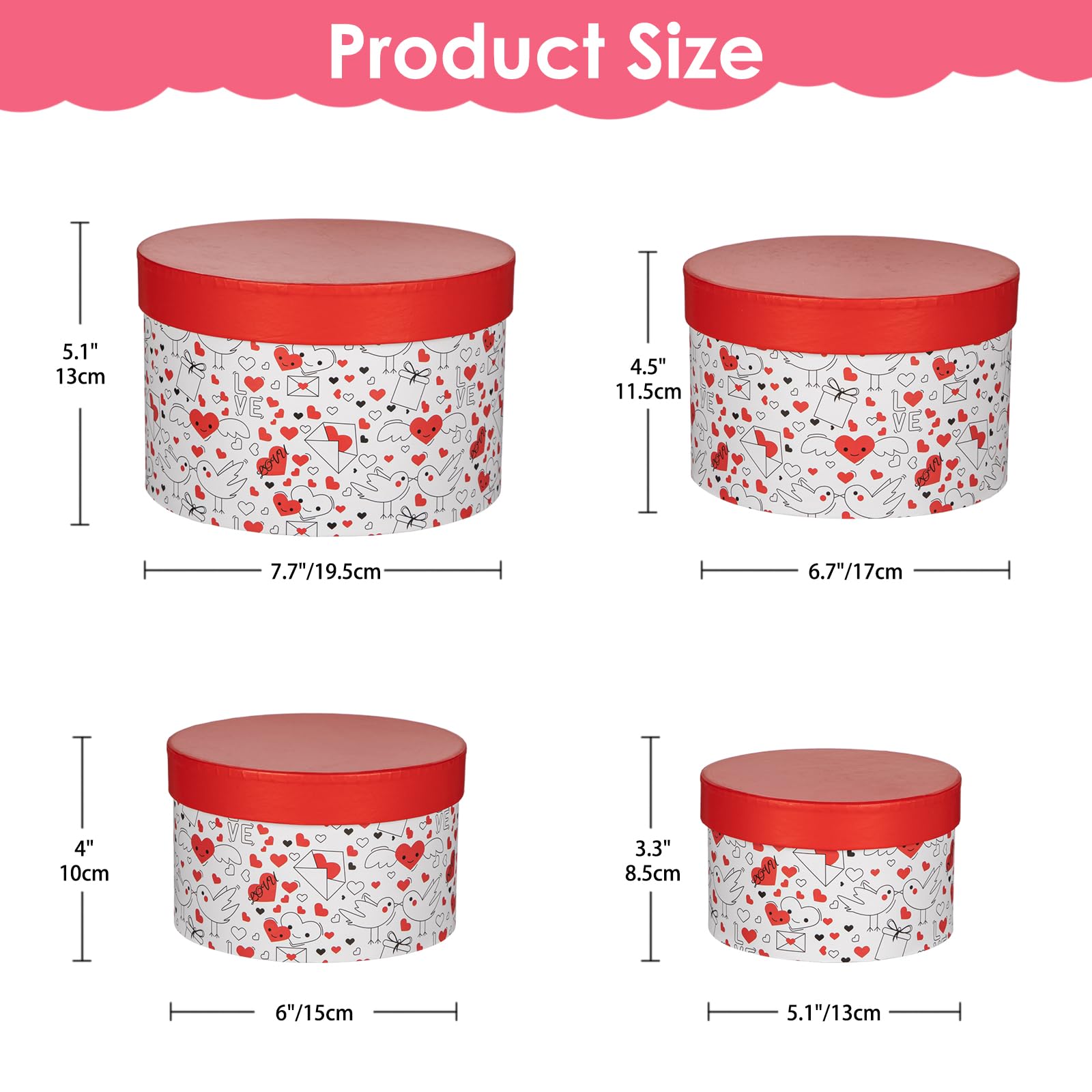 Luxury Round Nested Gift Boxes with Lids (Set of 4) – Reusable Sturdy Cardboard Gift Box Set for Birthdays, Weddings, Anniversaries, Christmas, and Valentine’s Day – Red & White