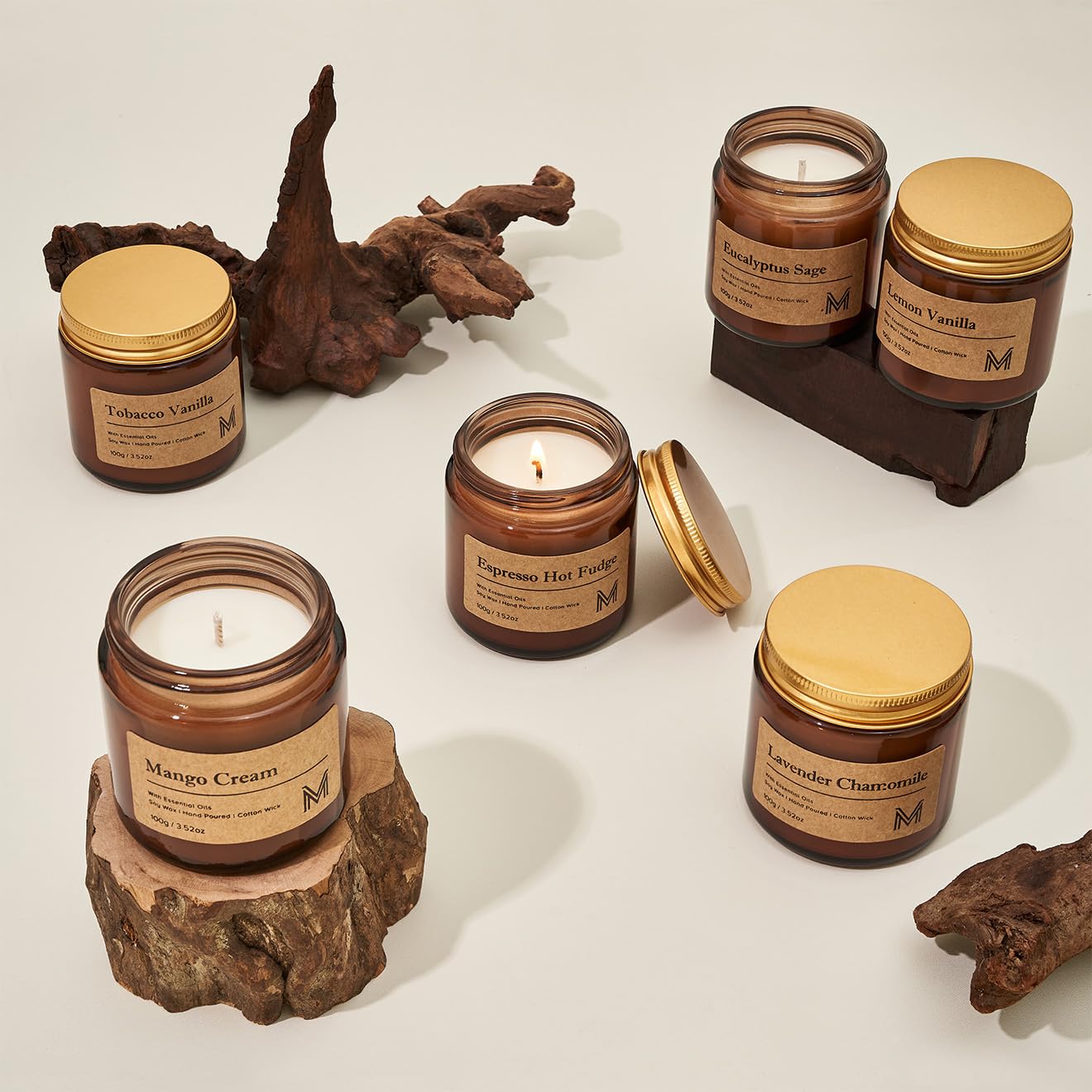 M&SENSE 6 Pack Candles Gift for Home Scented Aromatherapy Candle Set for Women Soy Wax Long Lasting Amber Jar Candles Gift for Birthday Housewarming Mother's Valentine Day
