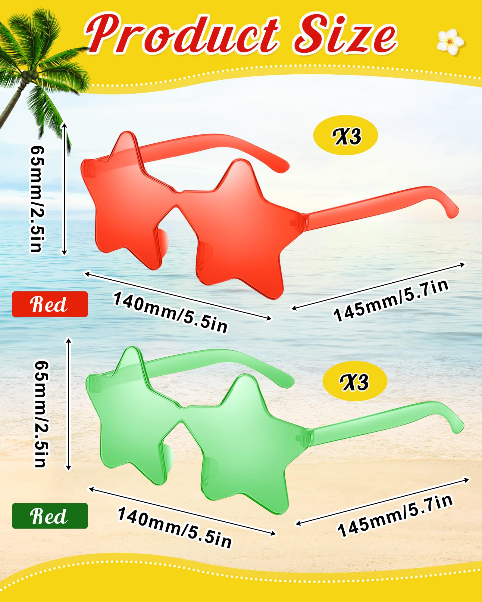 - Rich Package Content: you will get a total of 18 Christmas party supplies in July, including 6 red Santa hats, 6 pairs of star-shaped glasses and 6 flower leis, the sufficient quantity and rich content enough to meet your party decoration needs