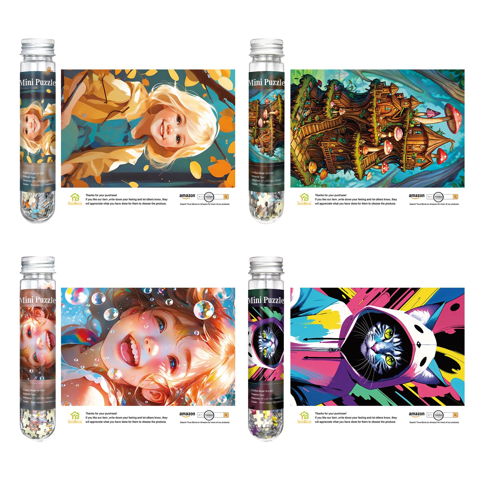 - Ideal travel companion and gift:This puzzles for adults are stored in a sturdy plastic test tube. Small size is easy to carry, and you can do relaxing small jigsaw Puzzle in the poffice or classroom during lunch break. You can also complete them on a train or plane while traveling.And it can also be used as a toy or as a gift (Birthday, Graduation, Easter, Thanksgiving, Valentine's day, Halloween, Christmas, New Year day and other events etc.)