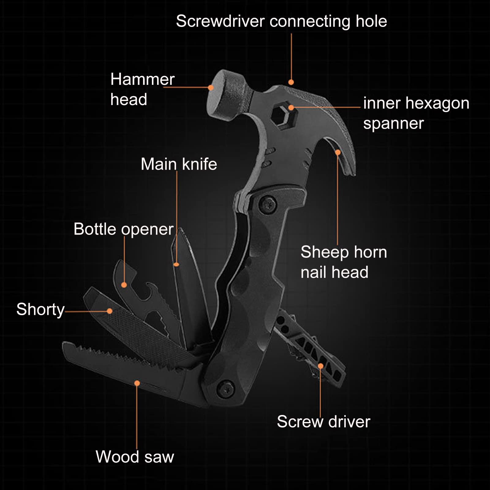 - Portable and Lightweight: Must-have multi tool, Ideal for camping, home renovation, DIY jobs and a great multitool hammer! Can cut, pry, hammer a nail,twist the screw, open fire hydrant, saw wood, strong enough to shatter the glass curtain wall, in a dangerous escape etc.