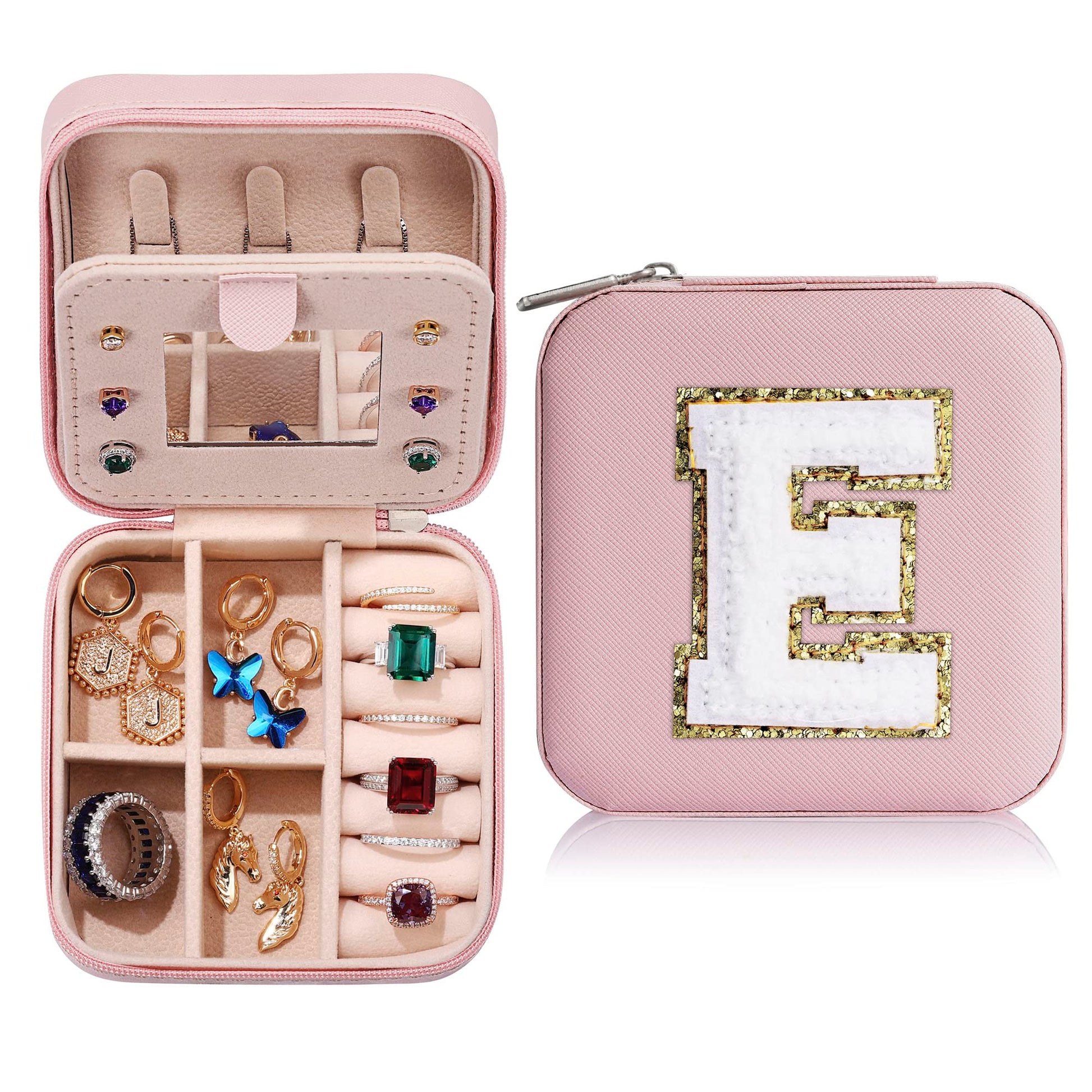 Parima Gifts for Teen Girls - 2025 Travel Jewelry Case Gifts Ideas, 6,7,8,9,10,11,12,13,14 Year Old Girl Birthday Gift Travel Jewelry Organizer Christmas Gifts for Daughter - Letter E, Pink